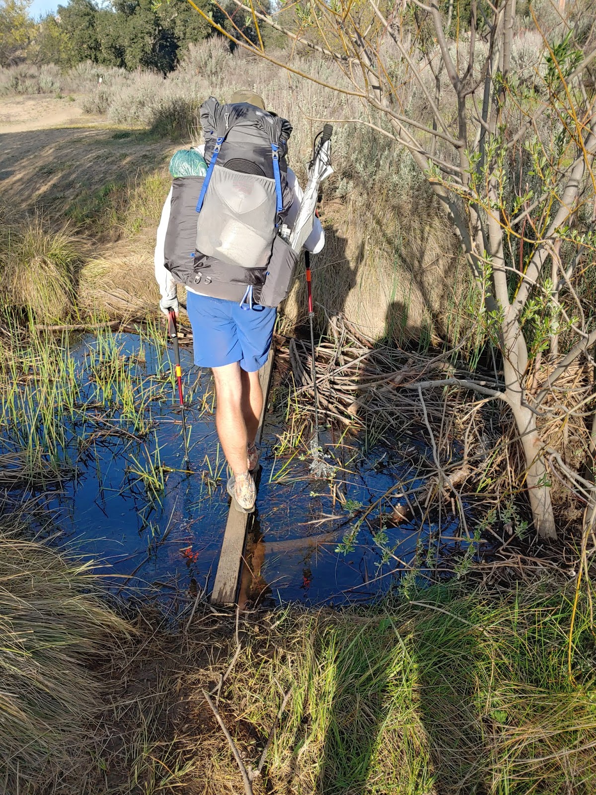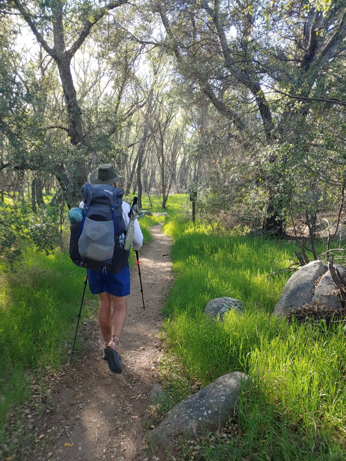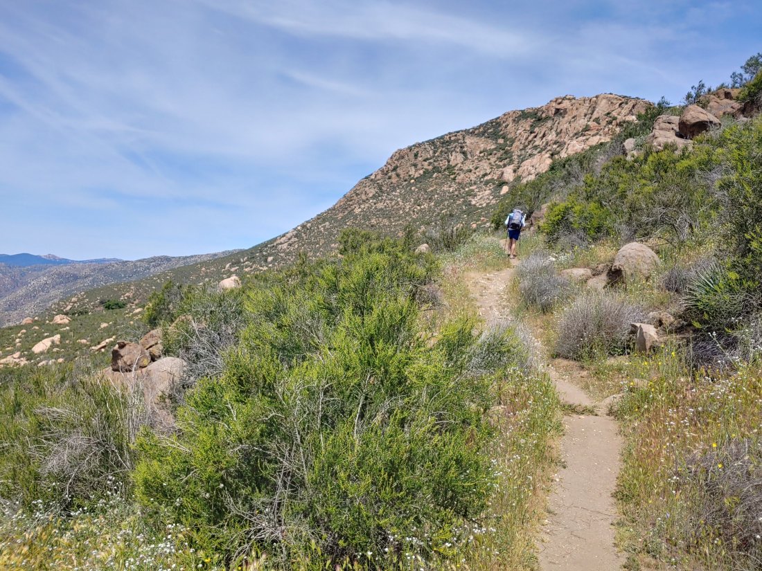 Today we had our first bit of elevation gain climbing out of Hauser Canyon, 1177feet in about 3.5 miles. That’s more or less pretty similar to Iron Mountain in San Diego, a mountain that I used to trail run parts of! But today I definitely wasn’t running- maybe it was the heat? Or our 32.5lb packs (we finally weighed them fully-loaded before setting off!)- or the fact that I hadn’t worked out in a really long time- but it kinda kicked my butt! I needed frequent shot-bloks and water breaks.