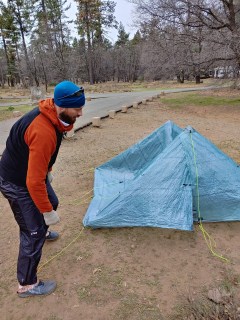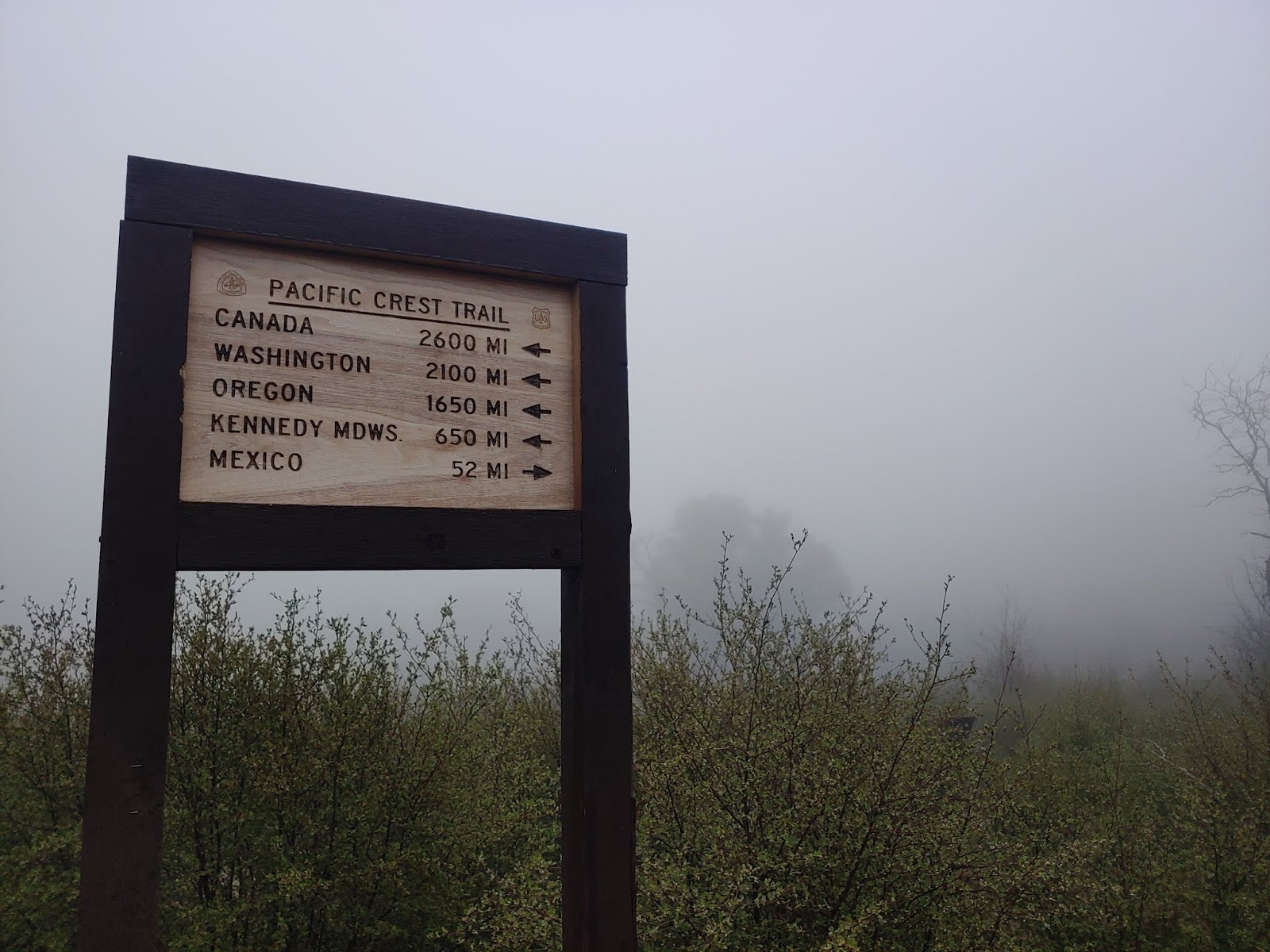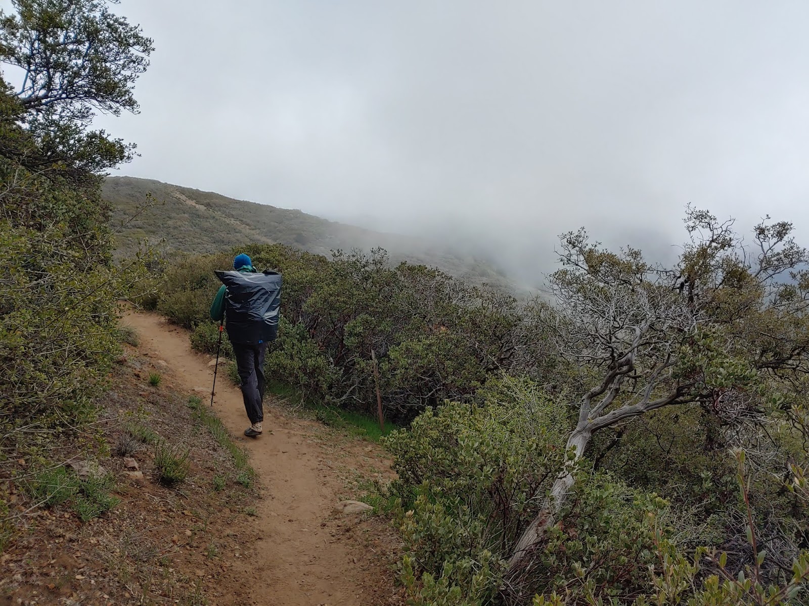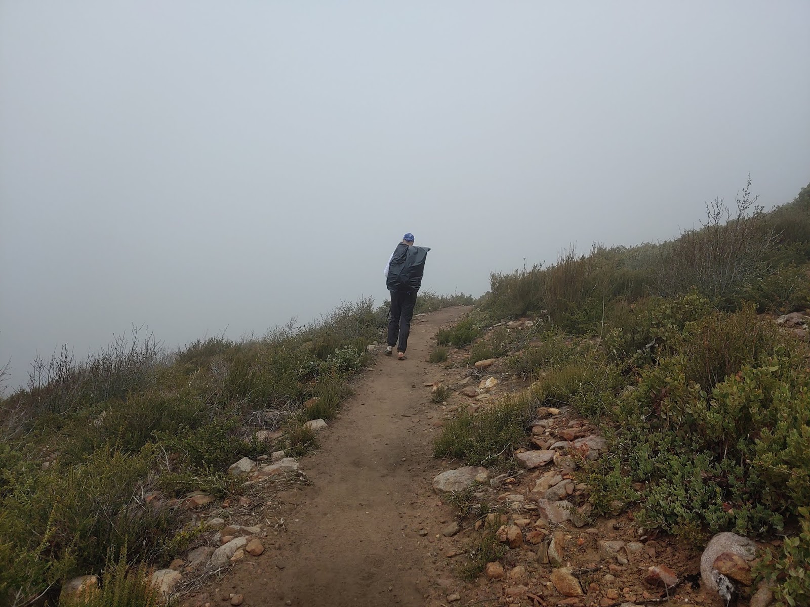 The day didn’t start out terrible- it was a beautiful, mystical hike out of Mt. Laguna- green and foggy and fairytale-like. Although it was chilly with occasional gusts of wind, I figured as we lost elevation throughout the day it would only get better. But guess what, guys? It didn’t. It got colder and wetter and windier- at some points we were walking thru 65mph winds, which was literally blowing Matthew and I around the trail; we had to use our hiking poles to stay grounded! Parts of my pack I didn’t even know existed were whipping me in the face. My hands were so cold they were useless- Matthew had to unbuckle my pack so I could get my gloves. Snot was blowing from my nose. I was chilled to the bones. At times the wind died down a bit, but it was short-lived; anytime we approached a turn I held my breath knowing it could get worse again…and it always got worse again.
