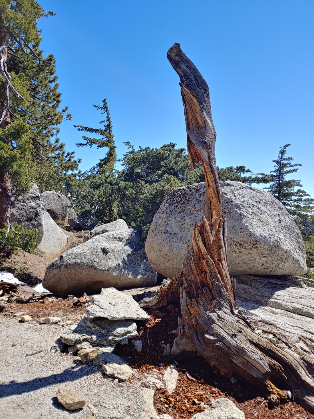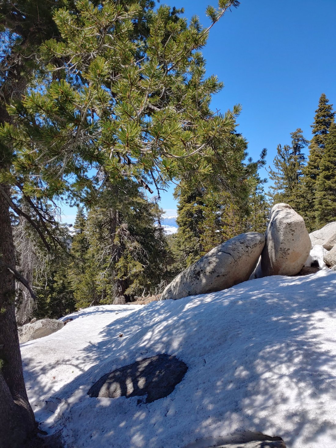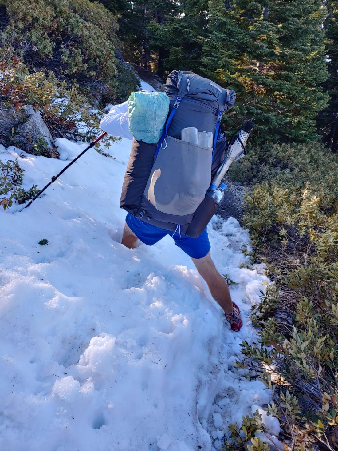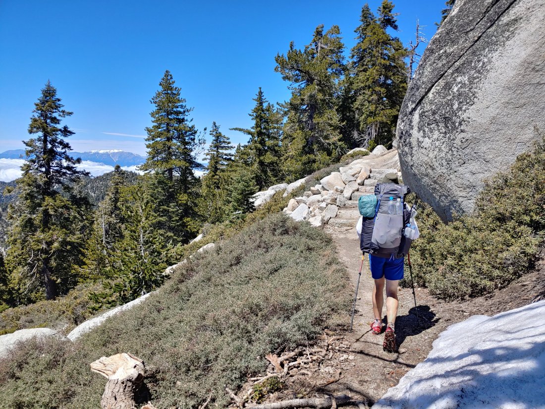 Happiness is: being prepared. We had originally planned to send our microspikes further north, but in doing research in Julian we had realized that we would probably need them sooner. We had them sent to Idyllwild and definitely put them to good use! We met a few people who tried going this stretch without them, and they surely struggled! One guy fell and broke both of his trekking poles, which was a HUGE bummer, since like our tent, his tent needs the poles to stand up!! He ended up MacGyvering poles out of large sticks he had found and it seemed to do the trick!