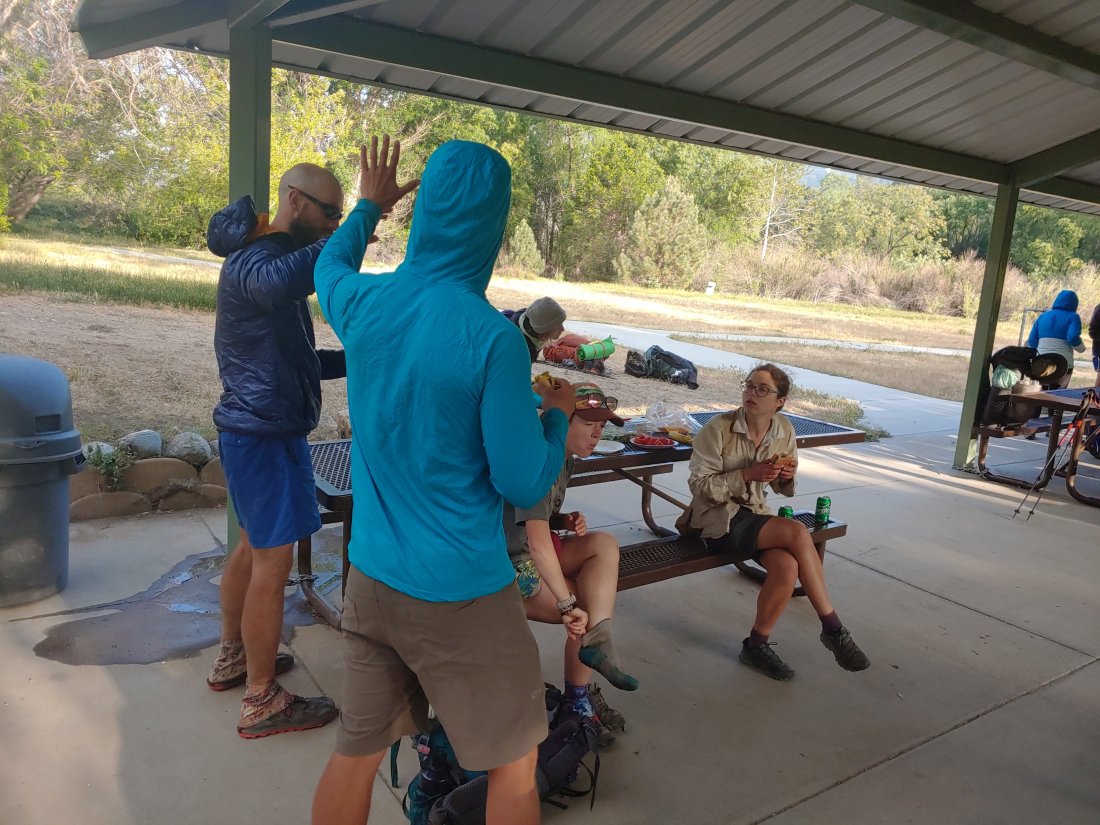 We stopped for lunch at a water source, and just as Matthew wondered out loud if our friends got vortexed into the hot springs, they showed up! Tortilla, Arc, She-Wee, and Big Mama showed up first, then Soundtrack and his friend Speedberry!