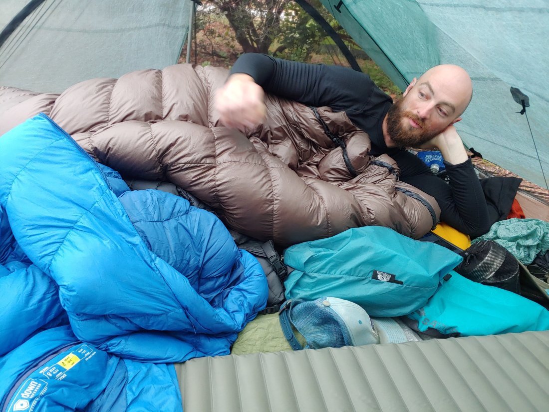 Knowing we had trail magic coming this morning and weren’t planning on a super long hike, we all slept in a bit- it was glorious!! And when we did wake, we woke with a lot less layers on than when we went to bed- at some point overnight it really heated up, which is wild ’cause it also rained!