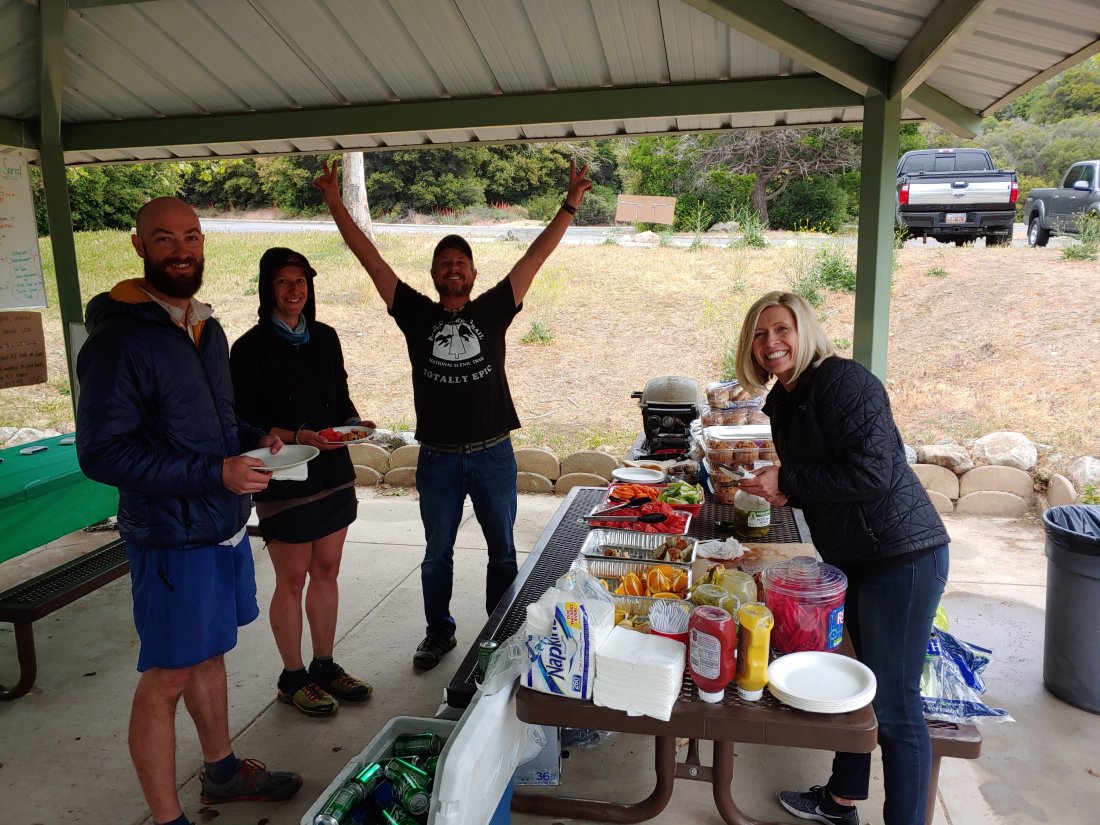 Pretty close to 9, Fish Tank returned with his wife Allison and a truck-full of food!! O.m.g! We enjoyed it to the max, and excitedy greeted hikers and friends as they all strolled in looking for food and shelter from the rain storm! Preston, Posh David, Watercolor, and Kez (a lady I chatted with briefly on a rainy day in Idyllwild, and then again when we expected rain in Big Bear) all showed up! We found out that Preston and Posh David also reserved rooms at the hotel, and I managed to talk Kez and Watercolor in to getting a room together too!