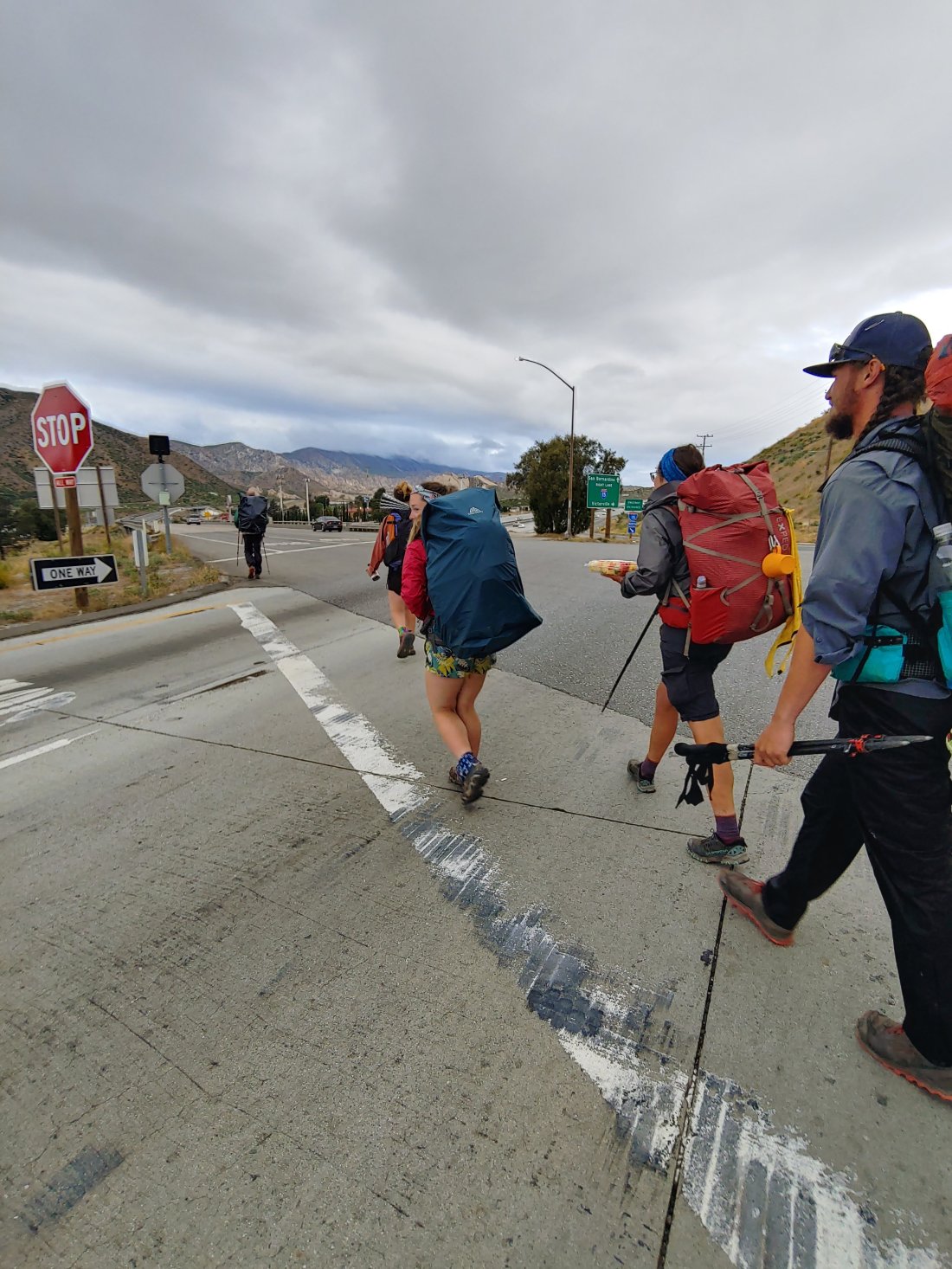 We spent a bit more time indulging, then eventually, one by one, our trail family headed out into the rain to hike our 14+ miles to Cajon Pass.