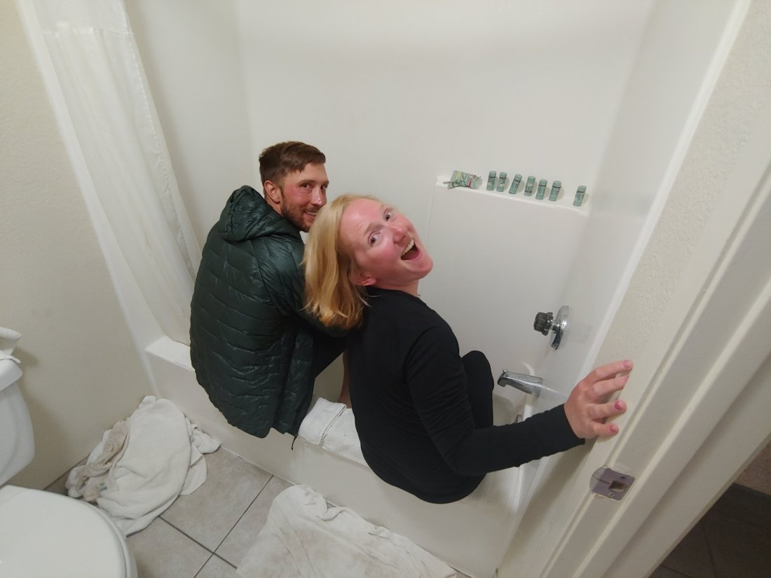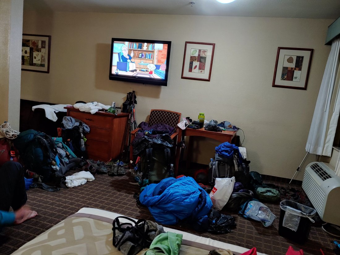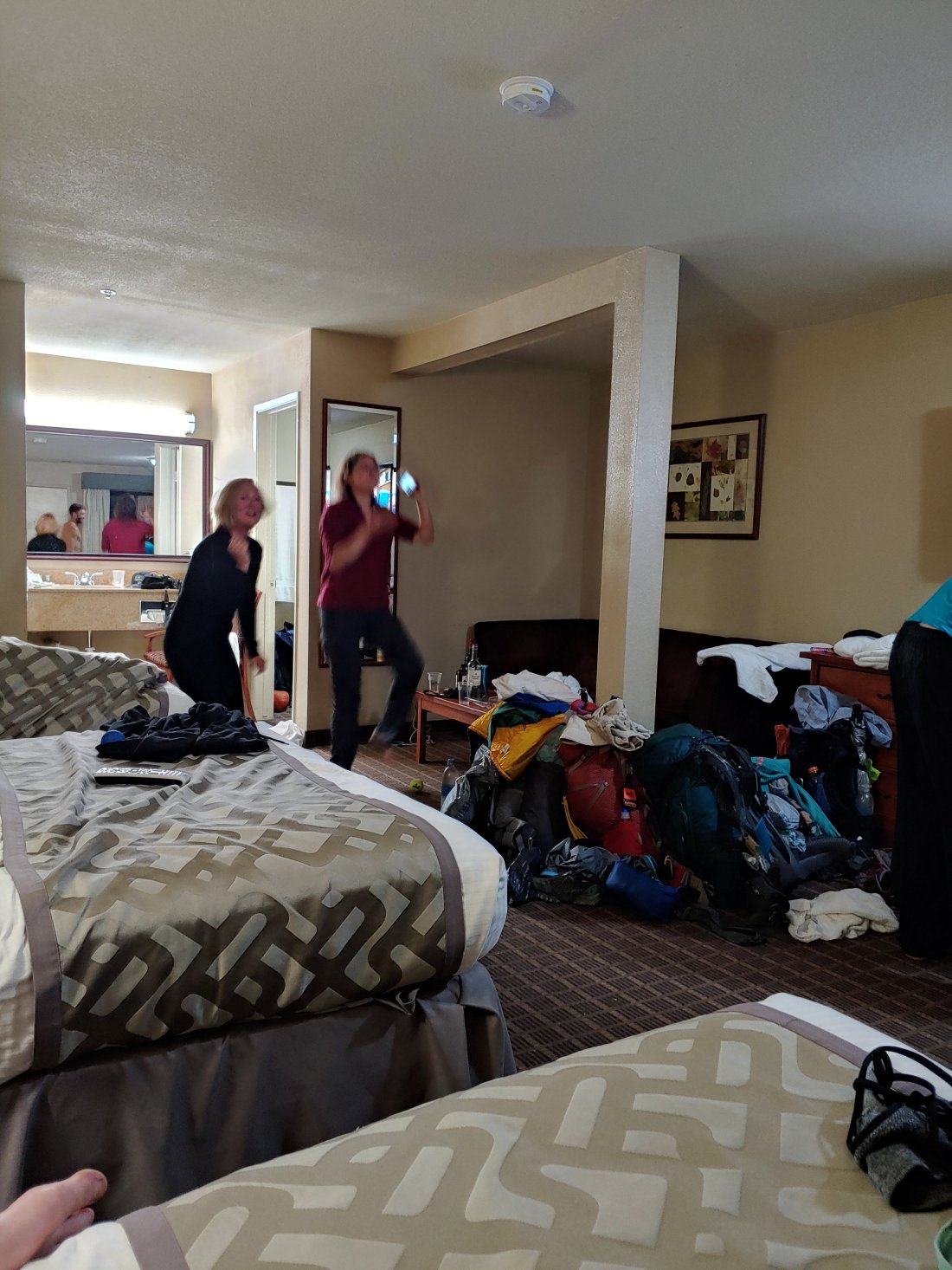 Slowly we all shuffled over to the hotel (it was quite the sketchy road walk, but included a stop for fresh fruit!) where we all took turns showering, did some loads of laundry, consumed a lot of Del Taco, drank wine and beer, had a dance party, soaked feet, and eventually passed out. Our hotel room had 3 queen beds and a pull out couch- 9 of us shared the room quite comfortably, with She-Wee taking one for the team and sleeping on his blow-up mattress pad.