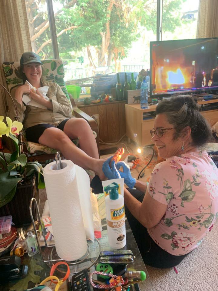 Matt and I both took a break from our packing when Maile (Mrs. Taylor) insisted on inspecting our feet and offered suggestions for foot care on trail. When everyone was done with their foot inspections and all packed up, Gnome took two trips to shuttle us all to the post office (and to show us the house that inspired the dwarf house in Snow White?!)
