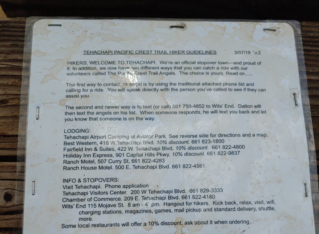 Bob, our trail angel, was super sweet and gave us some good tips for dining in Tehachapi. On the way to our hotel we stopped to grab our packages at Wit’s End, a local home that has been turned into a little “hiker Depot”- they accept resupply packages, serve as a mail drop, and have charging stations and wifi for hikers. So neat!