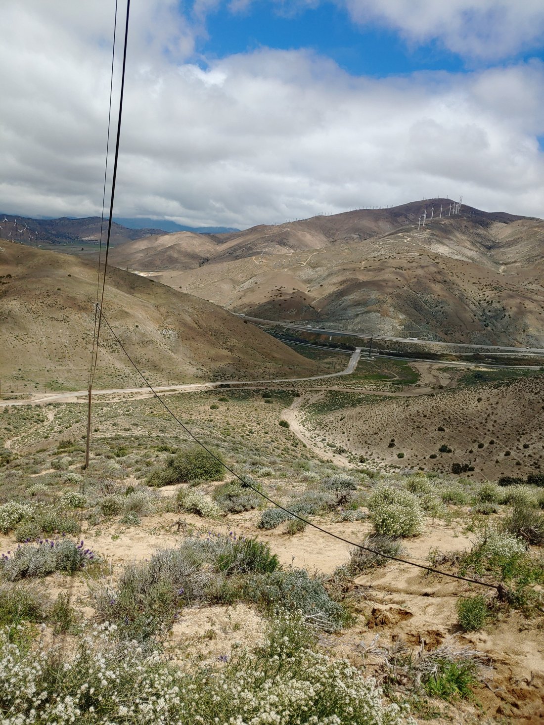 Bob (the same trail angel we had Saturday!) dropped us off on the side of the busy interstate that runs adjacent to the road that the PCT follows. We chose to hike southbound back to 558 for the same reason we chose to hitch into Tehachapi from mile 558 on Saturday: while both mile 558 and 566 cross roads that will get you into town, it is much easier to hitch from a normal road vs an interstate highway(@ mile 566)!