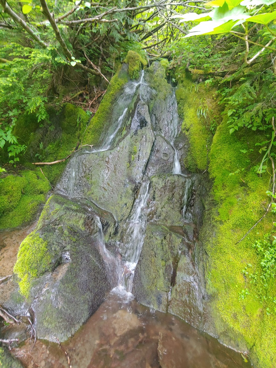 A complete turn around from the day before, this morning I was loving life, loving the trail, and loving the moment!! And just minutes after telling Matthew how happy I was, I slipped in a creek, soaking the entire right side of my body and my phone! I had just taken a picture of the waterfall and instead of taking the ten seconds to fumble around and put my phone back into its place, I decided to hold onto it until I got out of the mosquito zone. There was literally ONE step I needed to take to cross the creek but splattttttt.