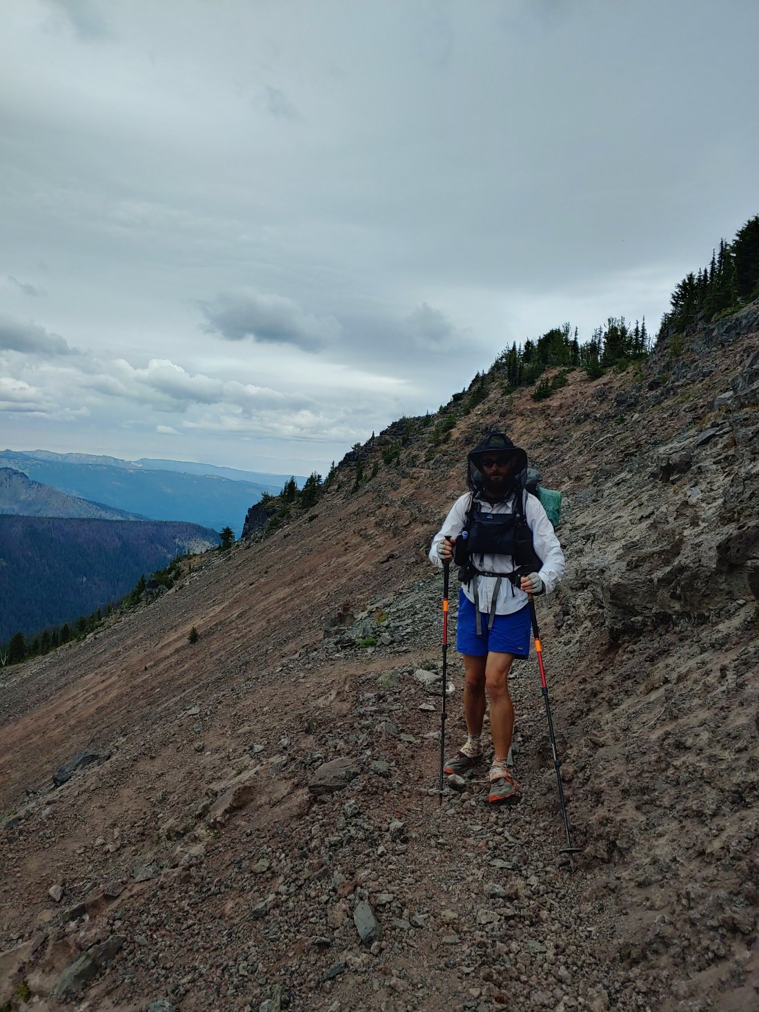In the days leading up to this leg of the journey we had heard a ton about Knife’s Edge: Scratch apparently had an anxiety attack while climbing up, and Gourmet said it was quite nerve-racking- and he isn’t even afraid of heights! Then an older, local couple overheard that we were heading into Goats Rock/Knife’s Edge and they were concerned with us doing it in rain. On the ride to the trailhead our driver told us that Search and Rescue recently had to recover an injured hiker who had fallen from Knife’s Edge. THEN we ran into a NoBo hiker who said, “you got one hell of a climb coming up: steep and dangerous!”- so I asked the next NoBO hiker his thoughts on Knife’s Edge- he, too, said it was sketchy. Awesome. I don’t mind heights, but Matt doesn’t like exposed heights and his anxiety always makes me anxious!!!!