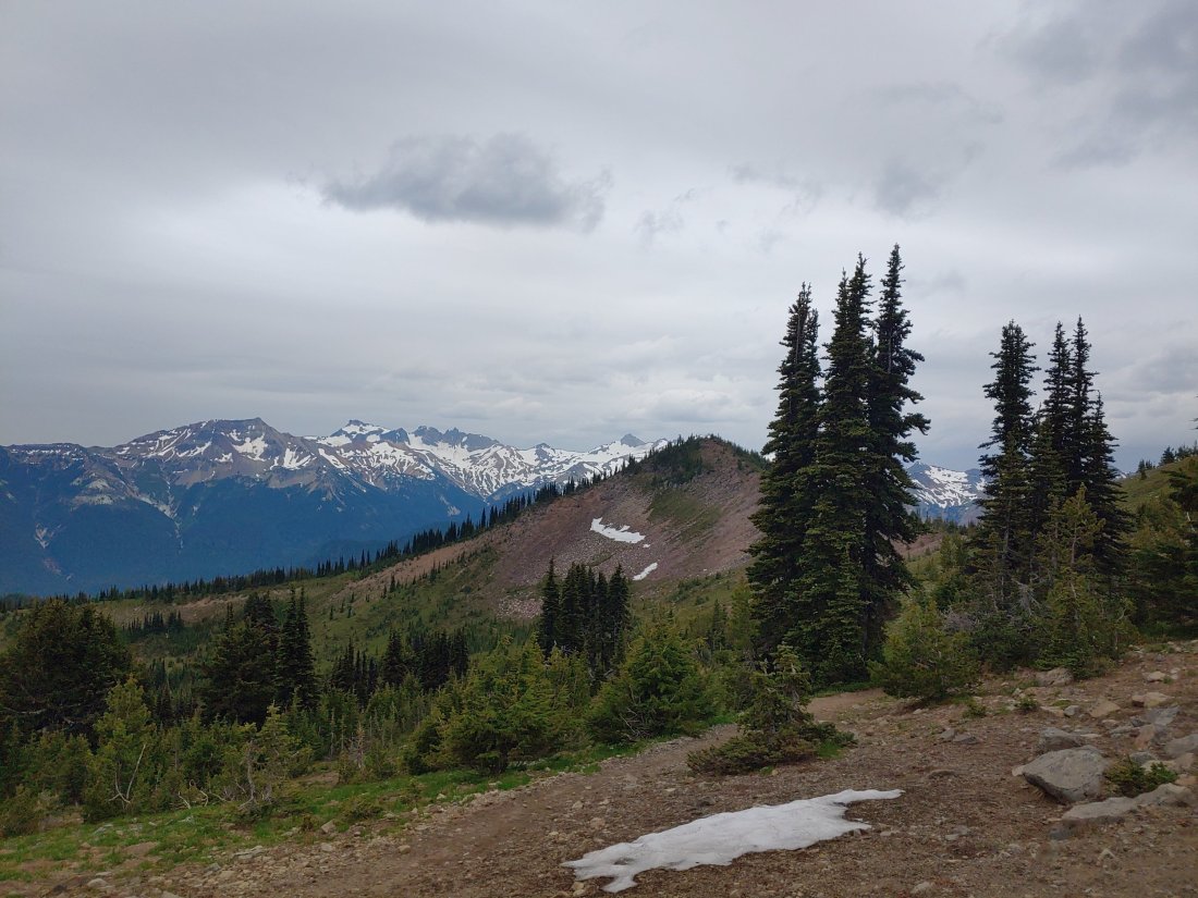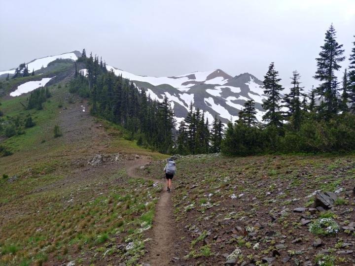 We were back on trail by 1240 with the hopes of crushing 15 miles so we could camp at an apparently pretty baller site before the much acclaimed Goat Rocks Wilderness- the Goat Rocks are supposedly one of the most amazing parts of the trail with incredibly stunning views- one guy (Cougar Bait) even suggested taking a zero day there to fully enjoy it! And Big Momma suggested we take a zero in our tent if it was going to be rainy- the views are that worth it!! Unfortunately we can’t afford many random zero days anymore- we already don’t know if we will be able to finish the entire trail this year, but we are still gonna try! So, cloudy or not, amazing day or not, we agreed we couldn’t take another zero day there.