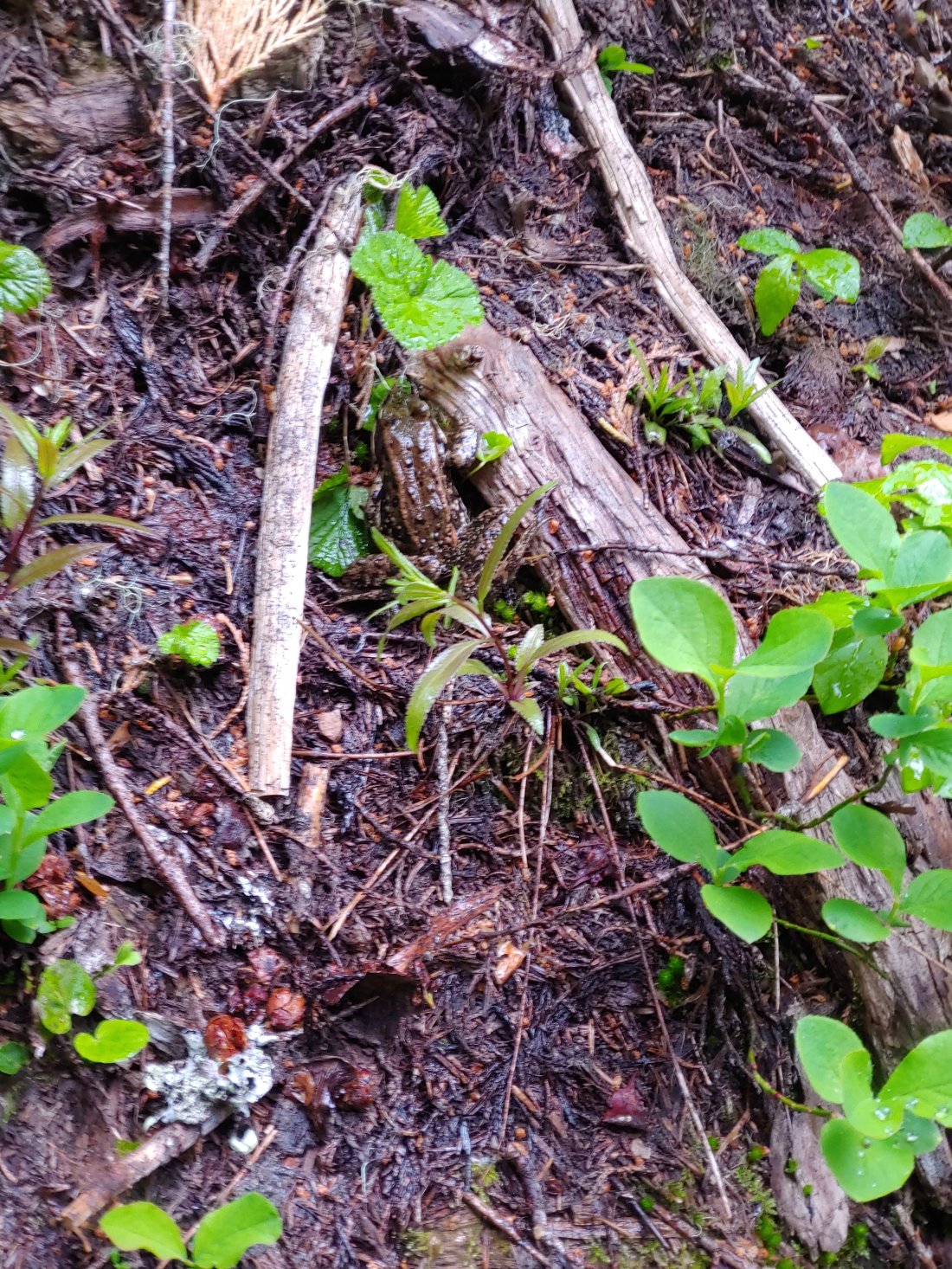 As we came across that big-ass tree again, we realized that it was a little more challenging to climb going north than it had been going south. Matt went first and crossed successfully. I struggled. There was only one small broken branch to step on, and it didn’t look like it would hold me. I decided to try and climb up and around the tree, but as I grabbed a different branch to help me maneuver up the steep, wet, loose dirt, the branch snapped and sent me sliding back down- thankfully I hadn’t made much progress so a. the slip wasn’t far and b. I didn’t lose much progress.