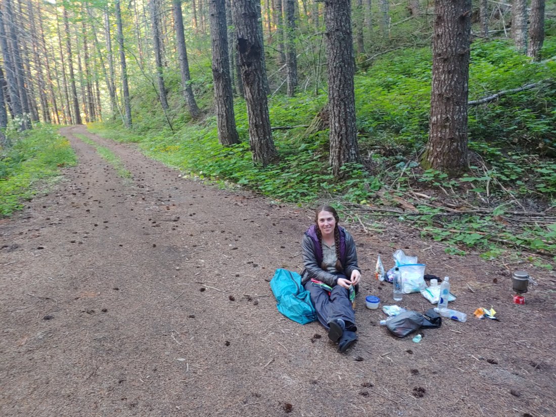 Since the mosquitos seemed to have been better, we set up the tent and enjoyed our dinner on a dirt road. Turns out the mosquitos weren’t entirely better, and since I wasn’t prepared for them, I went to bed feeling itchy.