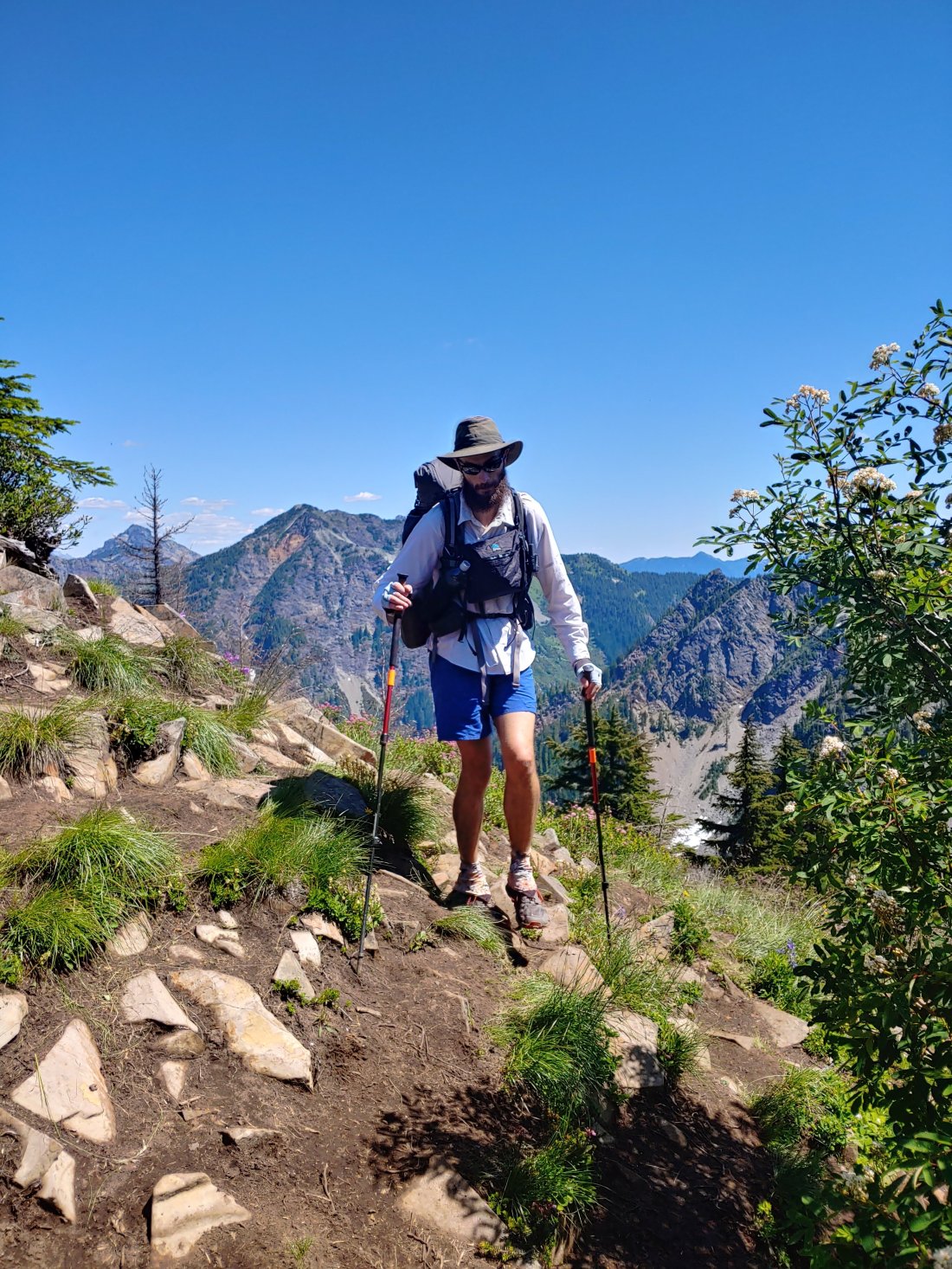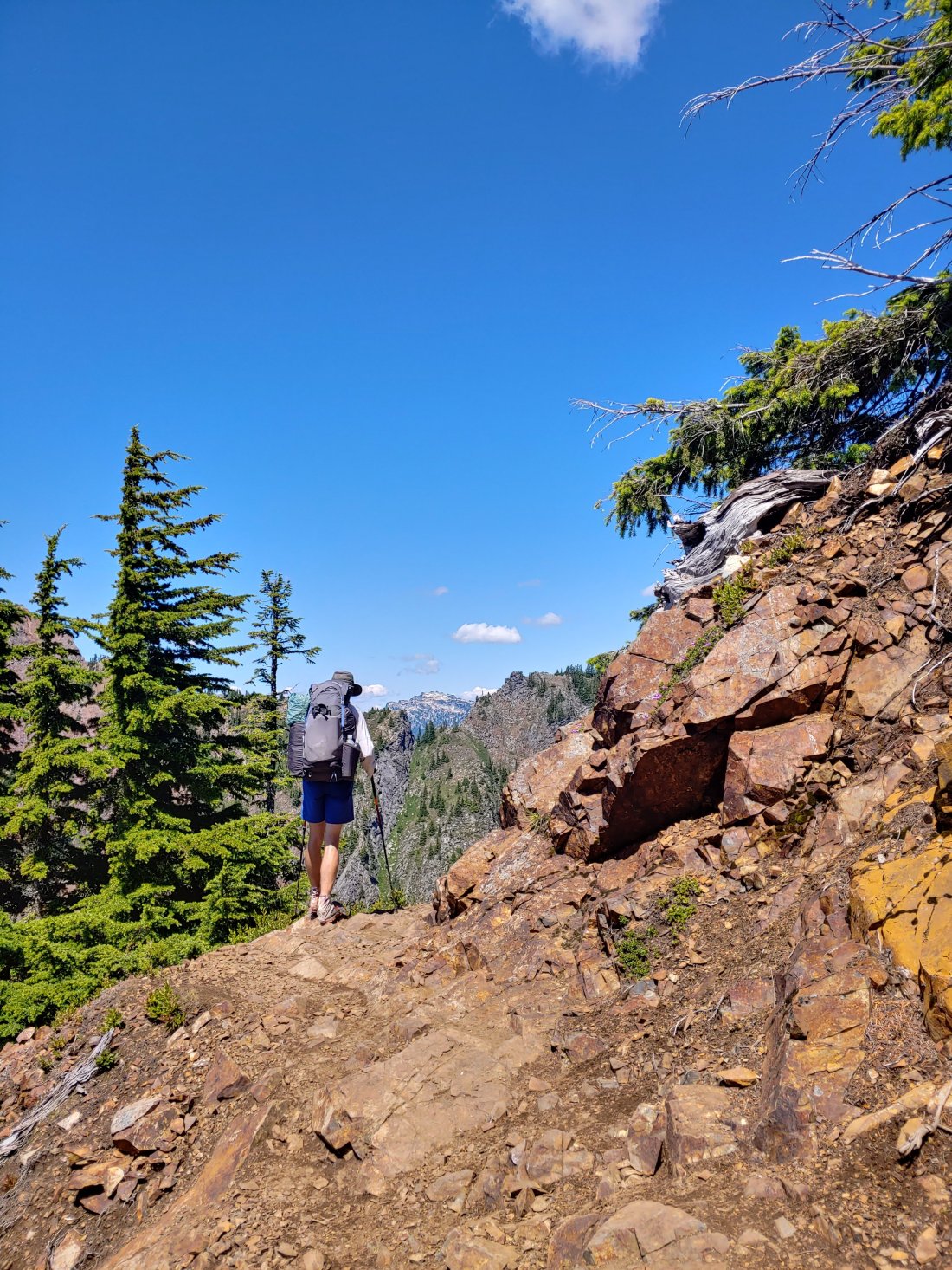 We started back on trail around 1120 with a gradual climb of just under 2500 feet in over 5.6 miles. Although our legs were fresh, I took the climb pretty slowly thinking that that might be better for my shins. It was the most enjoyable day so far weather and bug-wise, so I didn’t mind taking my time.