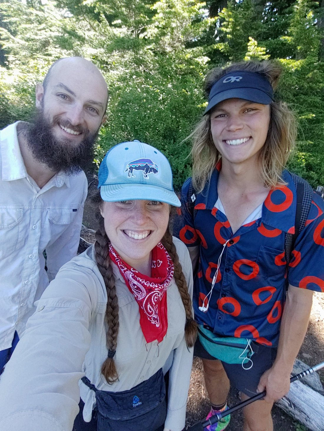 We were talking about his flip from the Sierra and his recent days in Washington (he has done everything from taking an on-trail, rainy-day zero in his tent watching Stranger Things to hiking over 30 miles in one day!) when somebody in the distance coming SoBo exclaimed, “oh my God!!” – turns out it was Gigs, a gal we knew from the desert!! Gigs was in another trail family that more or less hiked at the same pace as ours- we were often seeing each other at campsites, hotels, and town days. Last I saw her was in Tehachapi, when we chatted about our plans for the Sierra. She then ended up hiking briefly with our trail fam before her fam flipped up to Washington!!