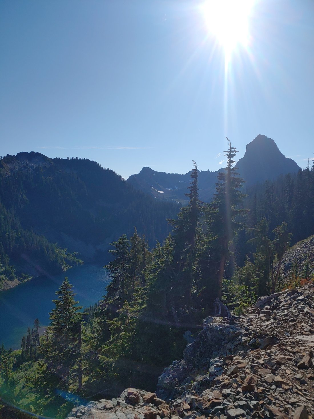 These pics are absolutely amazing! The lake from on high; I’m thinking that was the lake where you noshed? Glad you’re seeing familiar faces (I had no idea that the number of hikers was small enough for that to happen!) and totally bummed that you’re not feeling great. The Mountain came out for you in all its glory, though, so that’s a sign of only wonderful things to come 🙂