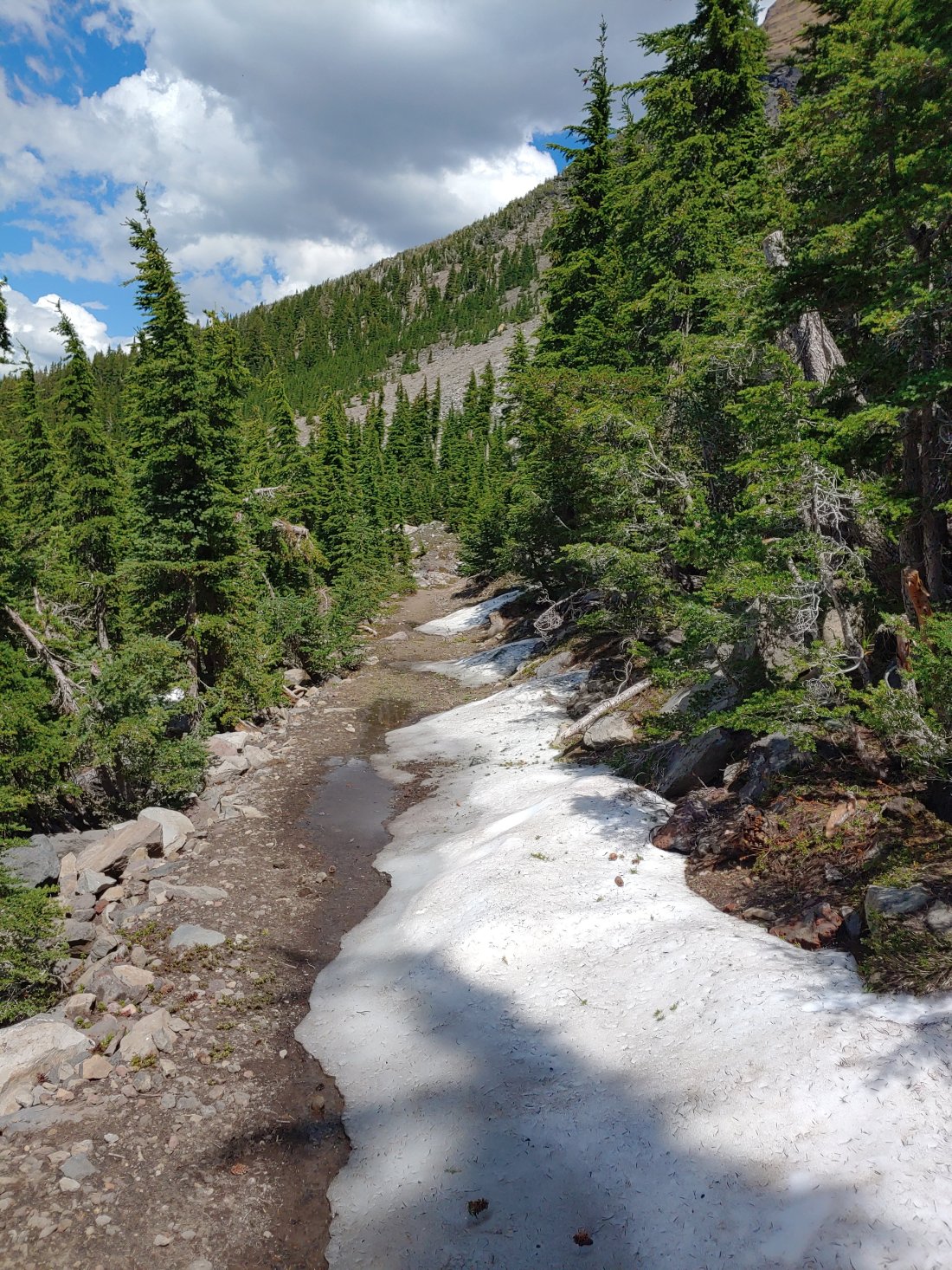 At one point we came across a guy we had met that morning totally passed out on the side of the trail- like, head on the trail, feet going off-trail down the side of the slope. He was laying on his sleeping pad so we figured he had planned this little nap session, but it had concerned me since he had told me earlier that he hasn’t been feeling well lately- he has had stomach issues for a few days and has been feeling overall exhausted. I stopped to make sure he was breathing before walking on, not wanting to disrupt his nap.