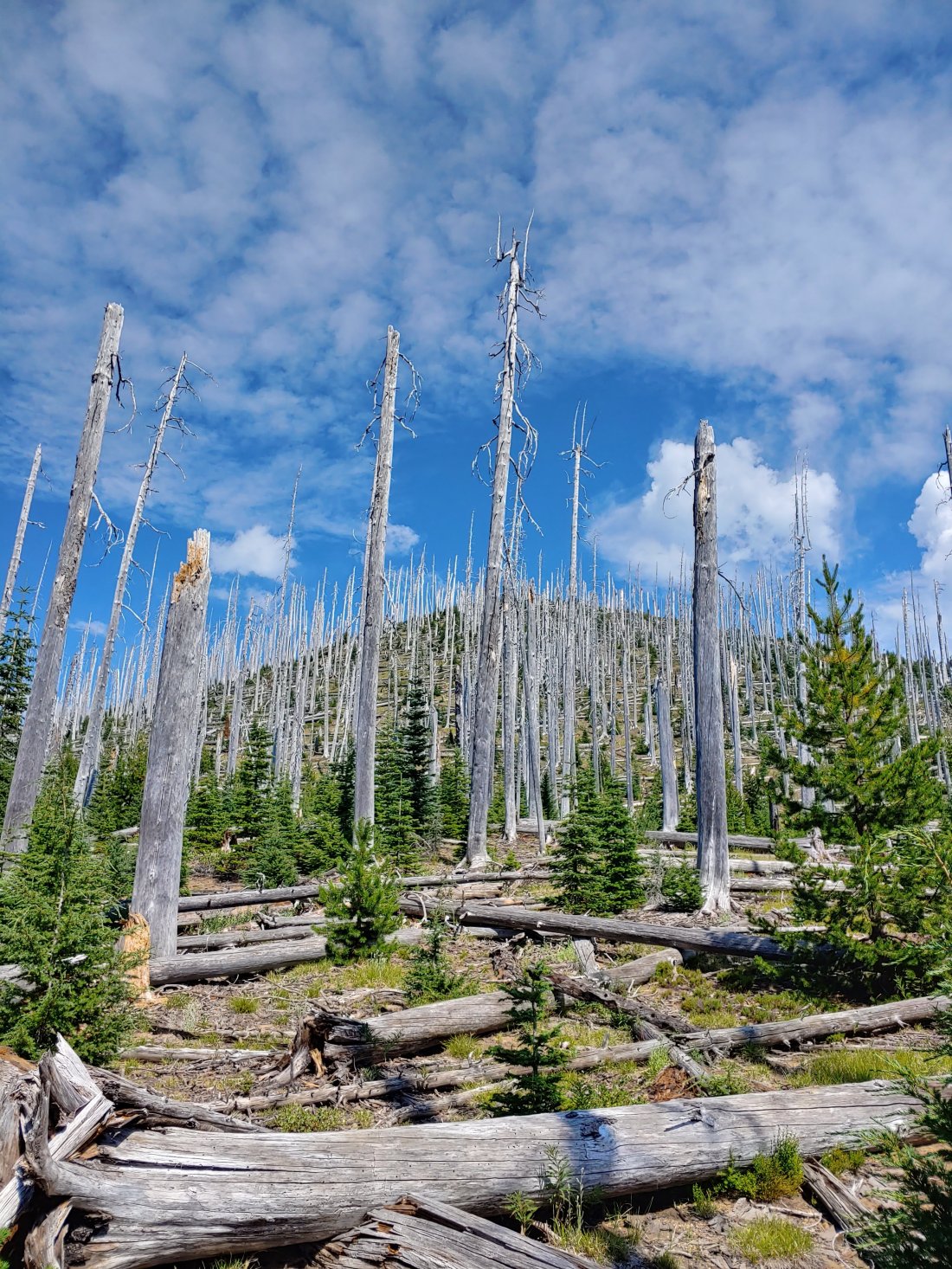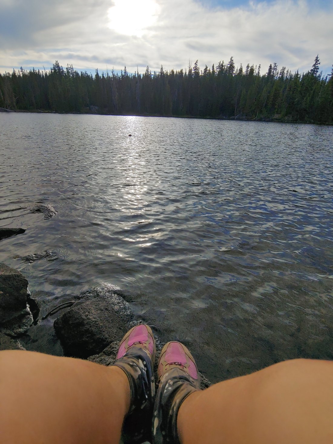 Before starting up again Matt filled and filtered his water, but I didn’t want to fill up water that people were actively swimming in so I opted out. I figured 1liter was okay for an easy 8 miles but guess what? It wasn’t. I forgot how hot Oregon afternoons can be AND I didn’t realize we would be walking through a few miles of a very exposed burn scar- oops! {Thanks for the sips of water, Matthew!!}