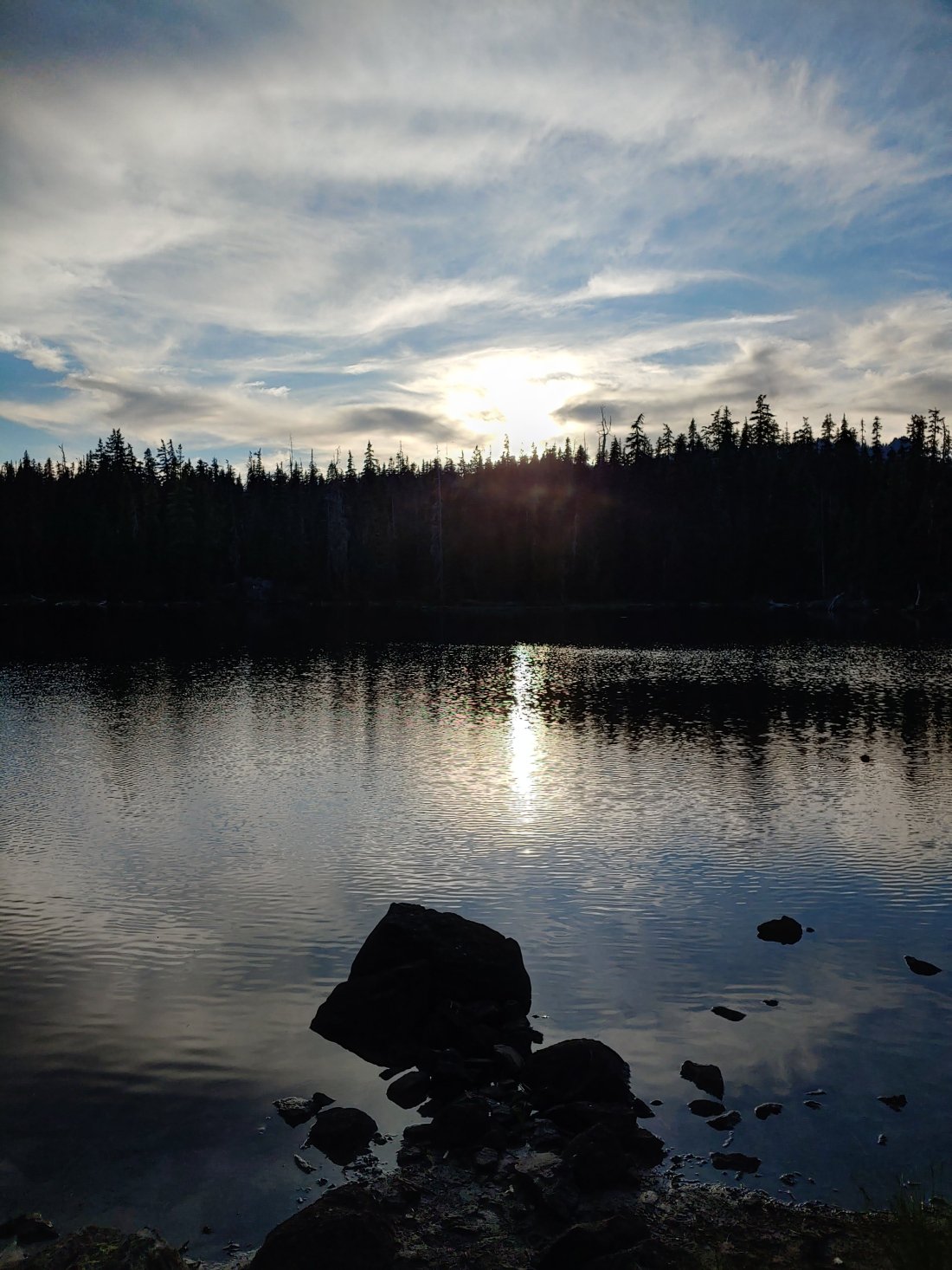 We arrived to the lake around 6, soaked our feet in the lake for a bit, then set up camp. When we arrived there was a beautiful breeze and no mosquitos, but as soon as our tent was set up & we prepared dinner, the breeze died and the mosquitos started attacking. Ugh.