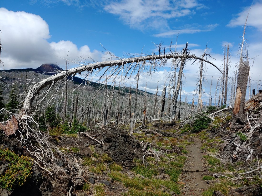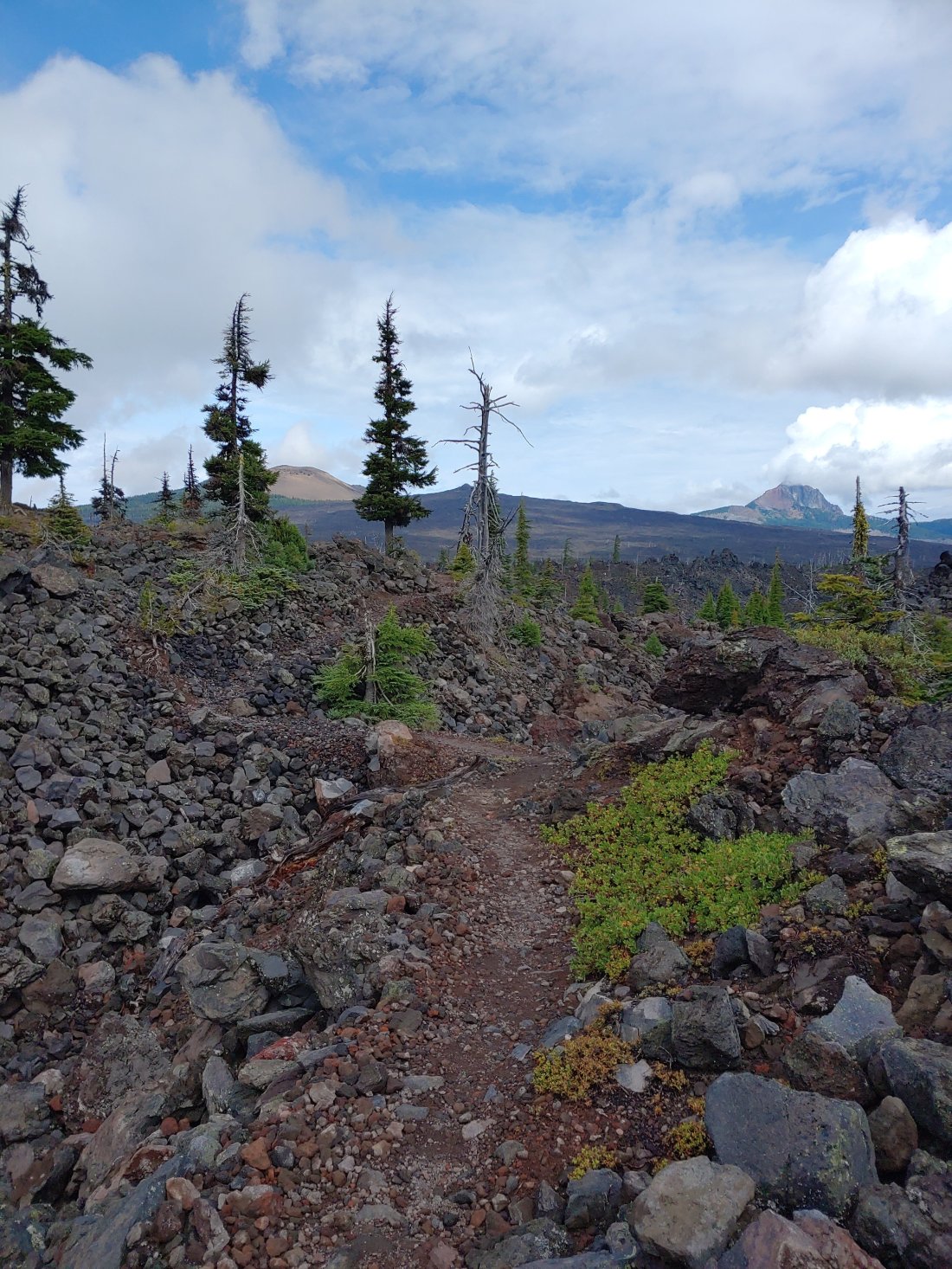 As we walked north, the trail became a ridiculously rocky lava field again, and then suddenly dropped us off at McKenzie Pass on highway 242.