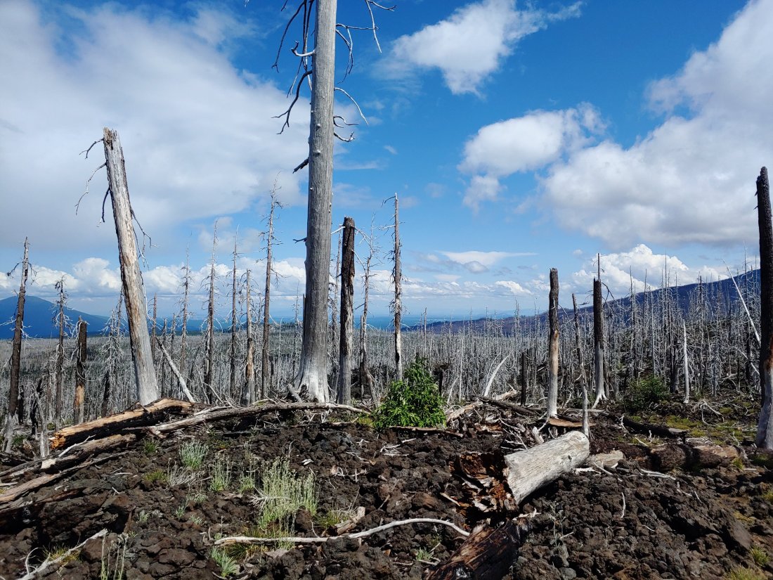 But first, we came across some trail magic!! I had a feeling all day that we would receive some magic, but had given up hope after reaching the pass and coming up dry- but then after a small section of rocks we came across a dirt road and bamm! Memento, a 2018 thru-hiker, was there with chips, drinks, and fresh fruit!!! I literally only had a packet of tuna left in my foodbag, so I was so psyched to find the goodies!! I ate an apple, banana, and a bunch of chips before we carried on to the dreaded lava field…
