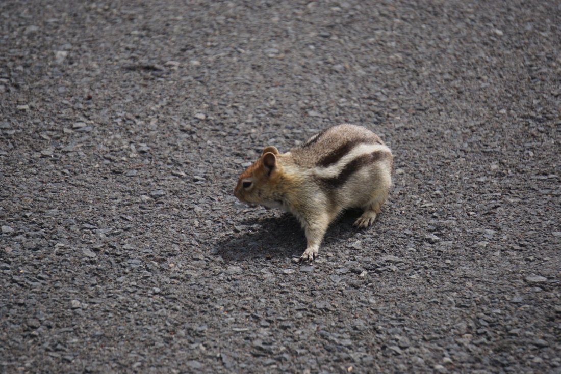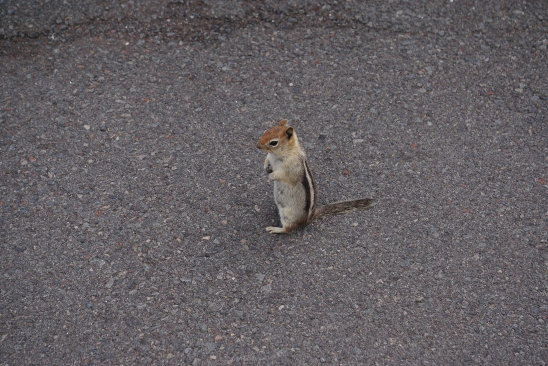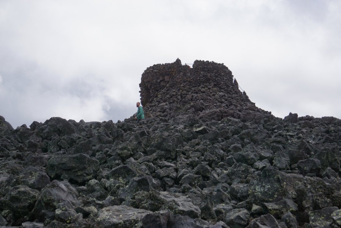 Instead of continuing across the highway on the trail, we headed up the road to check out the Dee Wright Observatory, a structure completely made out of lava rocks- it was cool to check out, but I most enjoyed the pit toilet and garbage cans! Matt and I ended up taking a decent break there, chatting with a SoBo hiker named Ice Age and fighting off the chubbiest, most fearless chipmunks ever.