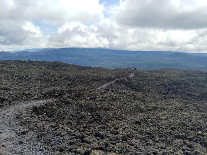 The next 5 miles after the pass is dreaded and hated by many- it’s apparently all lava rock and completely exposed, and we have heard that in the heat of the day the rocks will melt & destroy both your soles & your soul. A few people recommended that we plan to get there in the early morning or later in the evening to avoid the mid-day heat, but just like the aqueduct in the desert(where most people hike at night to avoid the heat) we marched across that lava field in the middle of the day! cloudy day for the win!