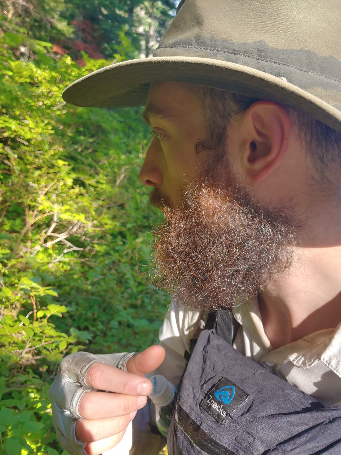 After filling up water we continued on- Matt was slightly ahead of me, and at one point he stopped and waved to me, silently telling me to look up at a ridge we were hiking below. Apparently there was a little black bear that scurried up the hill when he heard Matt coming, but the bear stopped at the top of the ridge to look back. Matt was hoping I’d be able to catch a glimpse of the bear, but no such luck. We continued on yet again…
