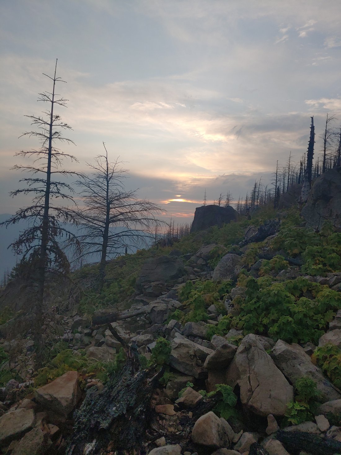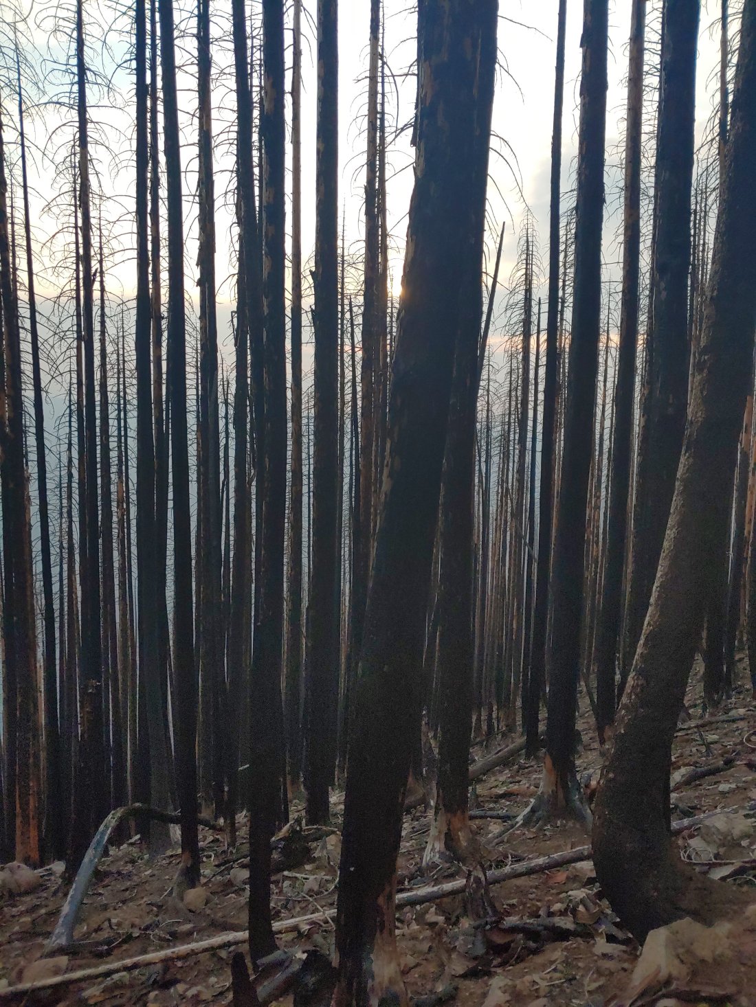 We walked through an old burn scar- with the sun setting & the current smoke, it was pretty trippy!