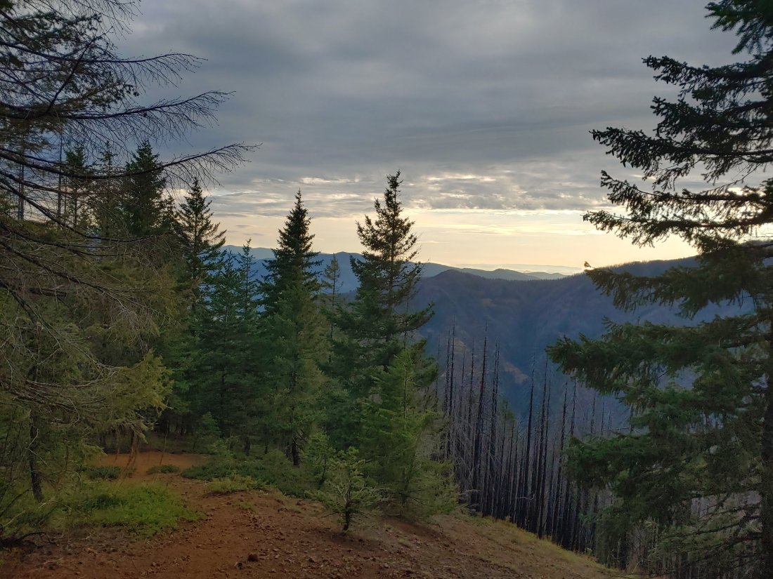 We were ready and on the trail by 0630, which should have given us more than enough time to get our 10 by 10 into Cascade Locks BUT, we neglected to take into account the terrain. When we weren’t slowly crawling down the ridiculously steep, knee-breaking descents, we were trudging carefully over loose rocks that were threatening to break our ankles. We were occasionally blessed with a dirt trail and a nice, easy descent, but that’s when we found ourselves treading stealthly through an obstacle course of poison oak. At times we had all three to contend with at the same time.