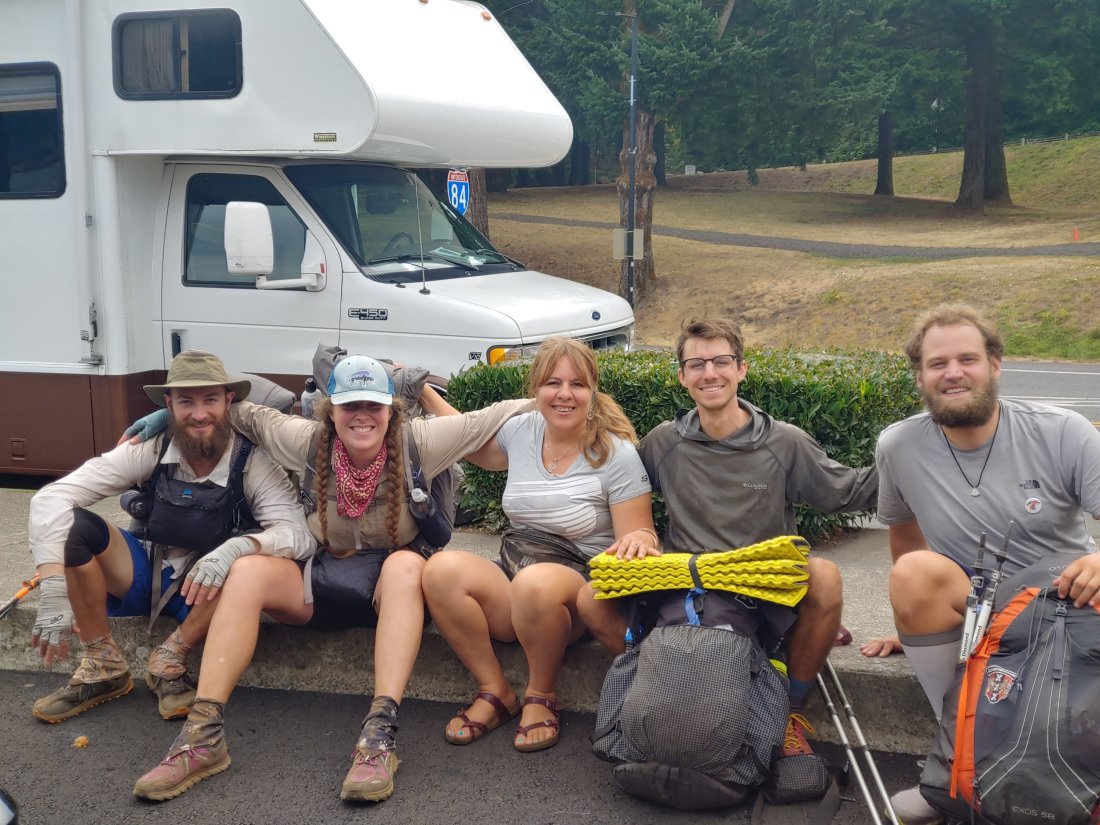 We caught the 4:55 bus from Cascade Locks to Portland, where we were met by pouring rain {I believe that’s day 6 of rain in Oregon} AND my Godmother/Aunt Christine. She was a saint and agreed to stuff all of us in her car & drop the others off at their hotel. {we also added another hiker to our carpool- a man from Spain that speaks minimal English and was stuck in Portland with an infected bite of sorts that was forcing him off the trail- he was looking for a place to stay, so Fairie Feet and Fraggles invited him to stay with them.}
