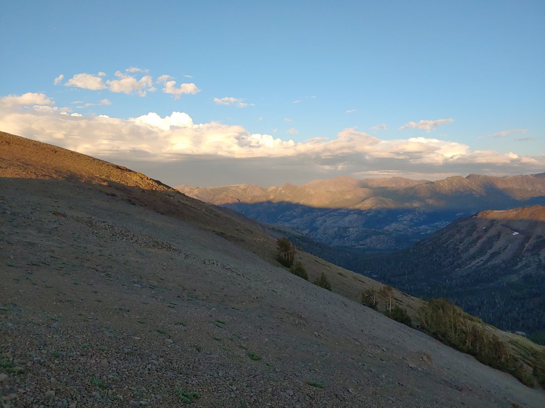 It looked stormy off in the distance, but we were treated to beautiful clouds, beautiful alpine glow, and a beautiful sunset. As the sun set, though, it became quite chilly!