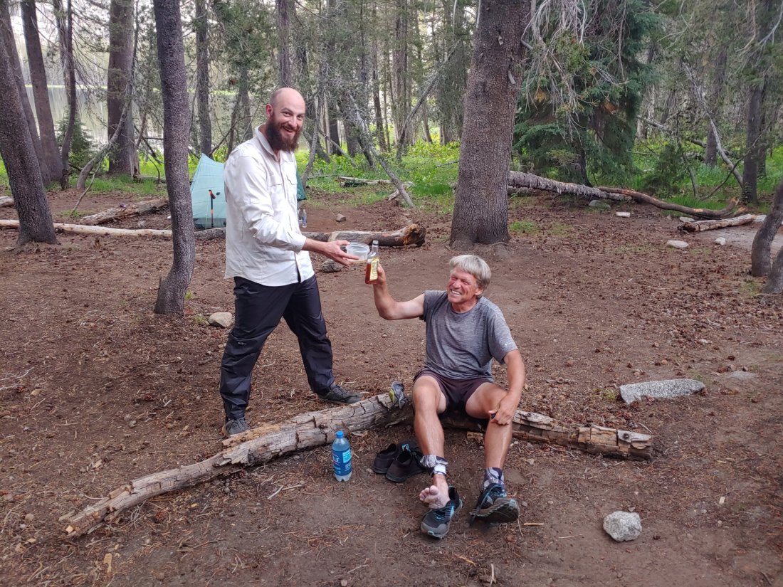 We ate dinner and as I stood up to pee and go to bed, Papa, a man I recognized from Kennedy Meadows North, appeared. He decided to call his day short as well and set up camp with us, bearing rum as a gift.