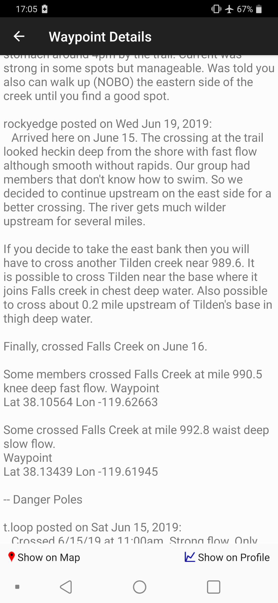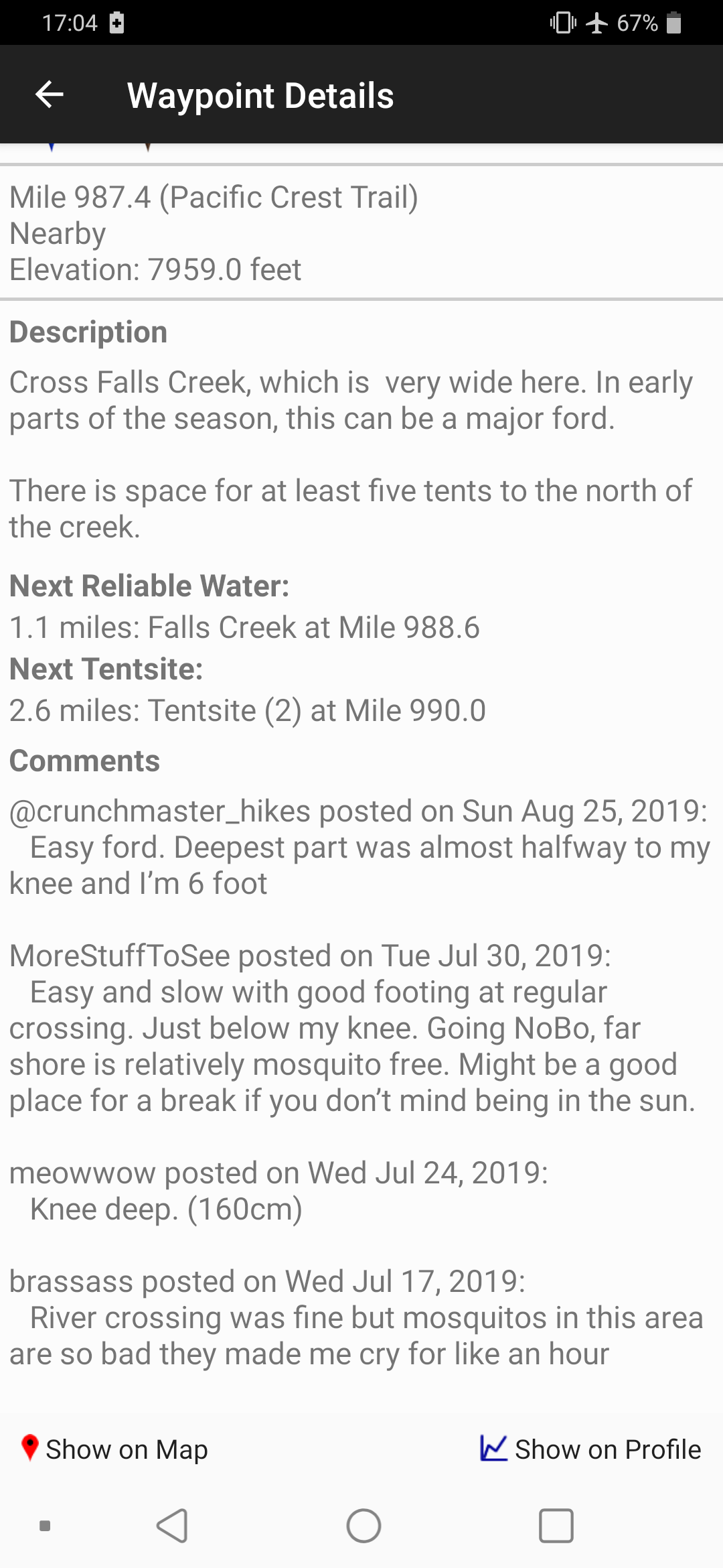This was Falls Creek, another dry crossing for us. Look at the comments from just two months ago!