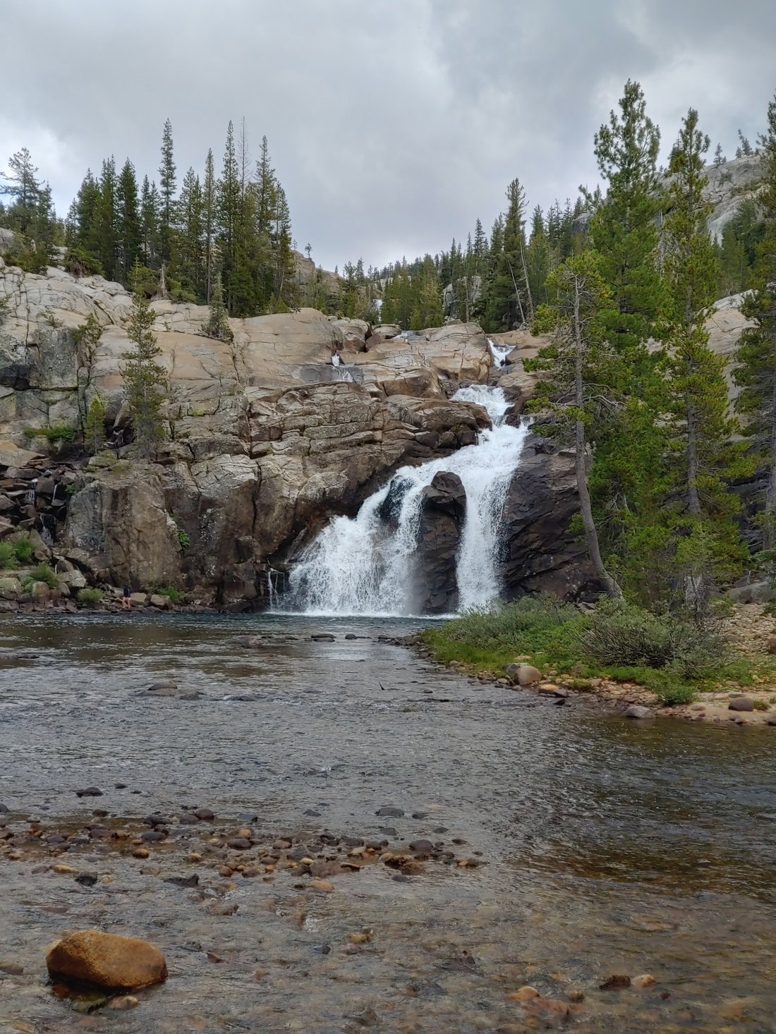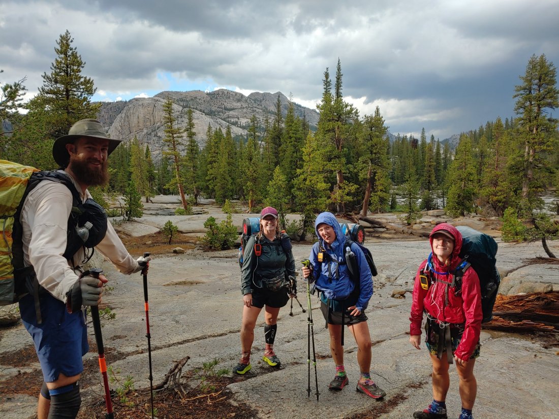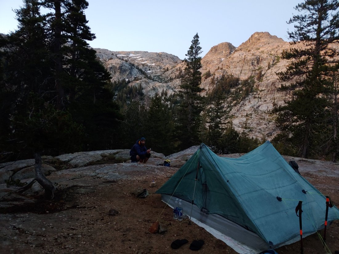 We pushed hard & walked fast, arriving to the store by 7:45. I picked up veggies and hummus, vegetable soup, and Pringles for dinner, while Matt opted for a chimichanga, sandwich, and bbq chips. Big Momma and Woodpecker went to set up camp while Matt and I feasted under the awning of the store while it rained yet again. When the rain stopped, Matt & I made our way to the bacpackers campground, found Woodpecker & Big Momma, set up our soaking wet tent and still damp sleeping bags, and eventually went to bed. Arc had fallen a little behind on the way into Tuolumne & we had hoped to meet up with her at the campground, but it was too damn dark to see anything. We hoped to find her in the AM!!
