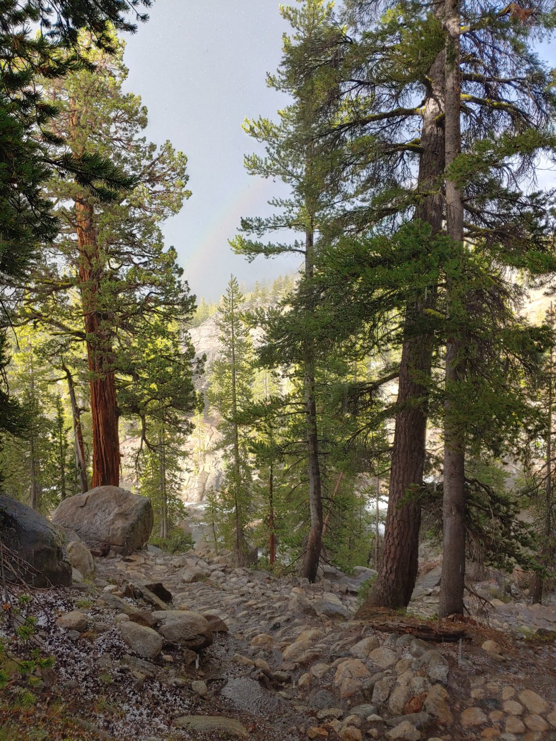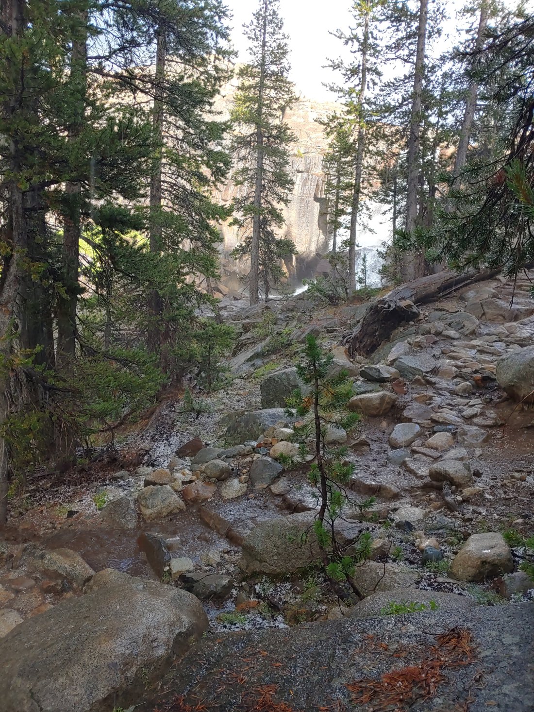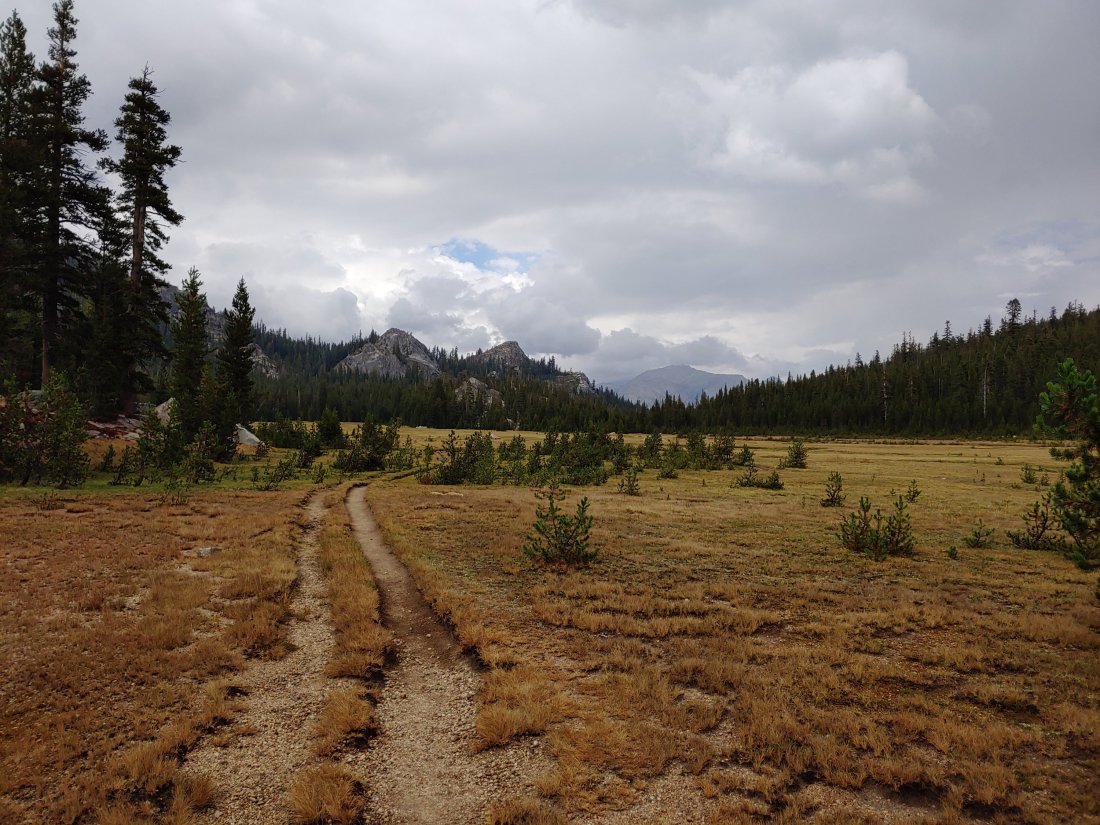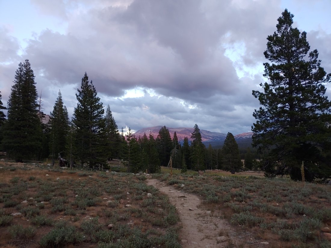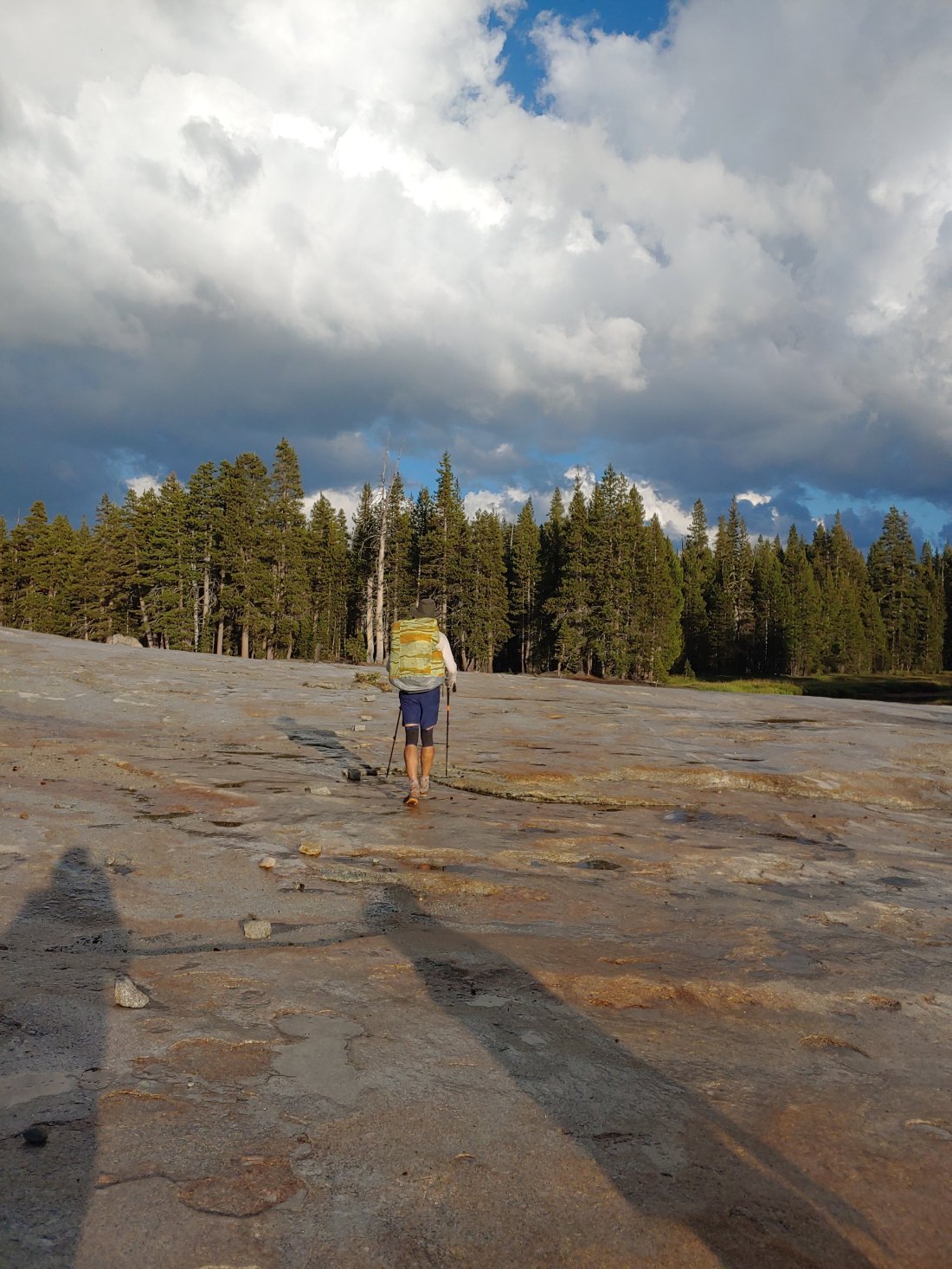 Our spirits were dwindling- Matt’s shirt was completely drenched, and we knew the temps would soon be dropping. We also had absolutely NO hope for arriving to Tuolumne Meadows in time for dinner, so our next goal was make it before 8pm, when the store closed…but, it was already 5:45, we STILL had just under 6 miles to go, & we had to find the fuckin trail.