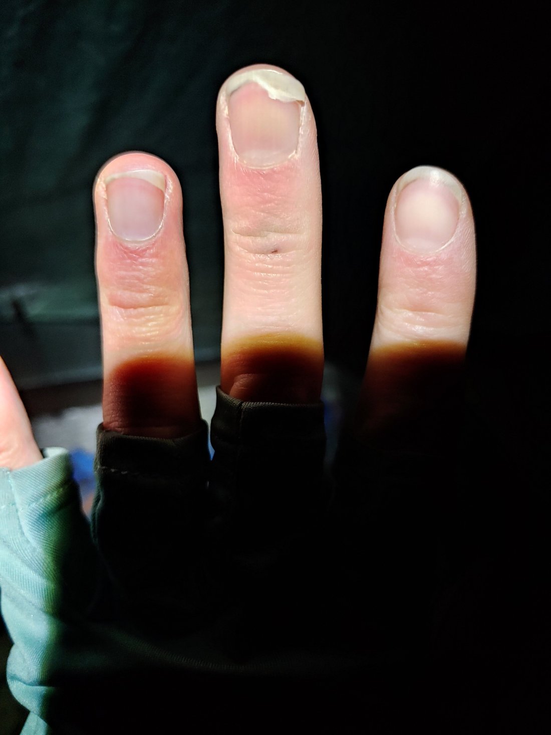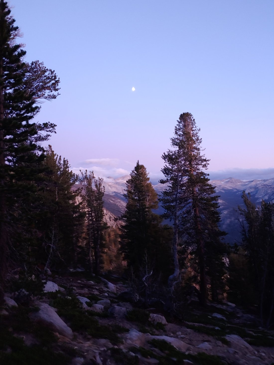 With our headlamps on, we went to work trying to find the tent-sites. After walking around for 10 minutes or so, I found them quite a bit off-trail and was disappointed to find that the sites were basically a thin layer of dirt on hard, impenetrable stone, making tent set up very difficult! Since we couldn’t hammer the stakes into the ground, we found big rocks to hold down our tent. We crossed our fingers, cooked and ate dinner, then escaped the cool and humid outside air for our cool and humid tent…
