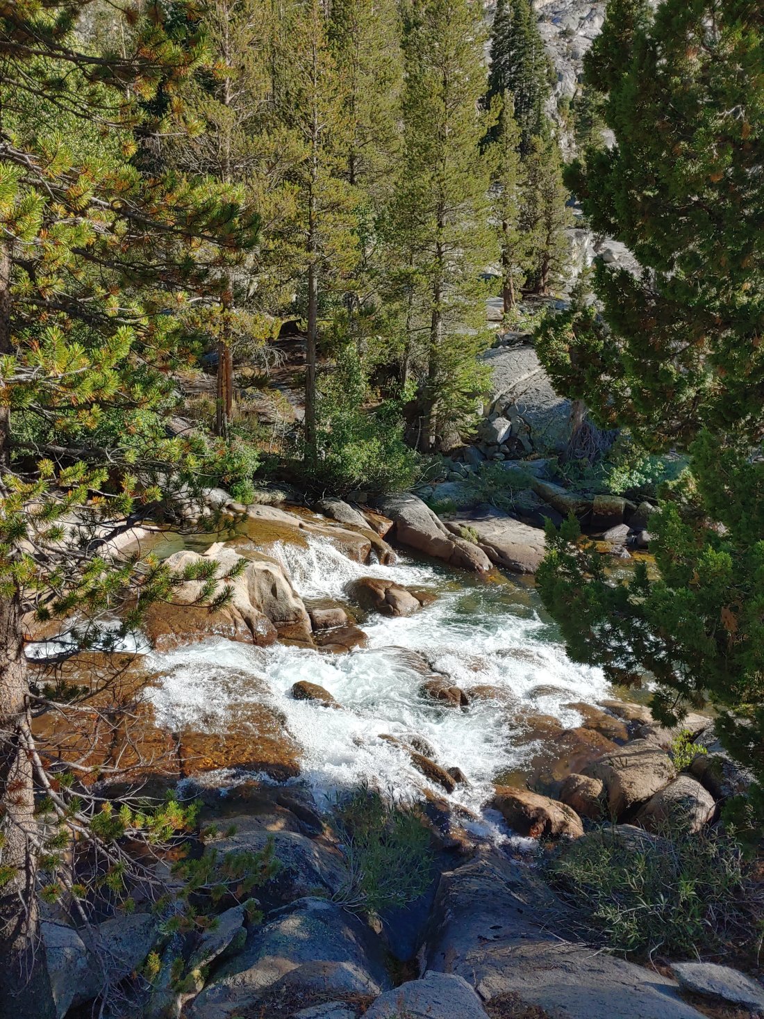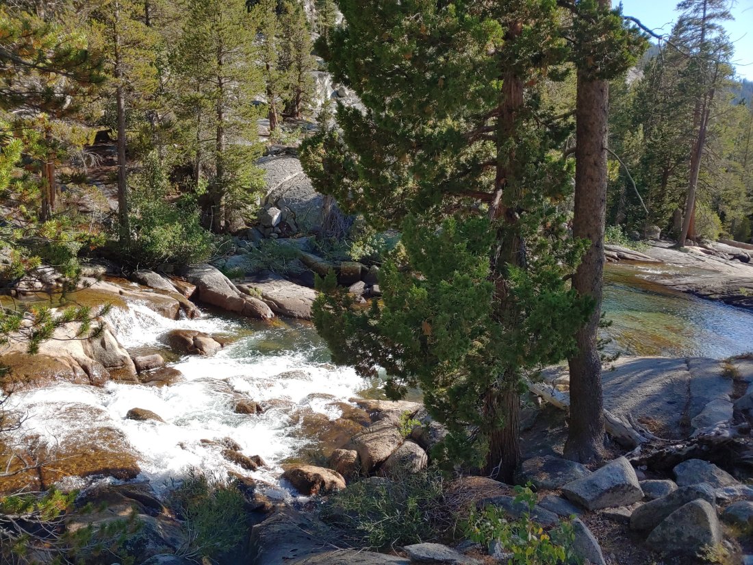 We were told that this trail was prettier than the PCT, which was probably true- we hiked a while on big, granite rocks along Bear Creek and had some pretty solid views. The creek was raging, and I was SO thankful that we didn’t have to cross it…yet. We would have to cross the creek the next day, which was more annoying than dangerous at this point- this creek is often thought of as the most dangerous to cross, but the latest reports stated it was ankle to shin deep- definitely doable, but wet feet suck. (Earlier this year the creek was thigh to waist deep, and in normal years, it is usually knee to thigh deep in June…)