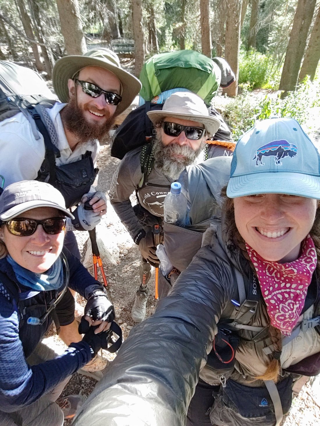 We stopped for lunch shortly after returning to the PCT, then continued trekking onward. Right before the start of our LAST big climb of the Sierra, we ran into Tumbleweed & Fable!!! We had leapfrogged with them throughout the desert, then ran into them randomly at Snoqualmie Pass- it was SO fun seeing them again!!! Tumbleweed’s daughter and her friend were also hiking the PCT, but for whatever reason the girls decided to hike south thru the Sierra, while Tumbleweed & Fable were hiking north to Truckee. Should they reach their endpoint, Tumbleweed will be the first above knee amputee to complete the PCT!!! Go, Tumbleweed, go!!!!