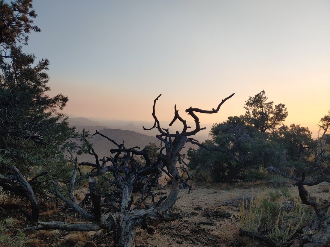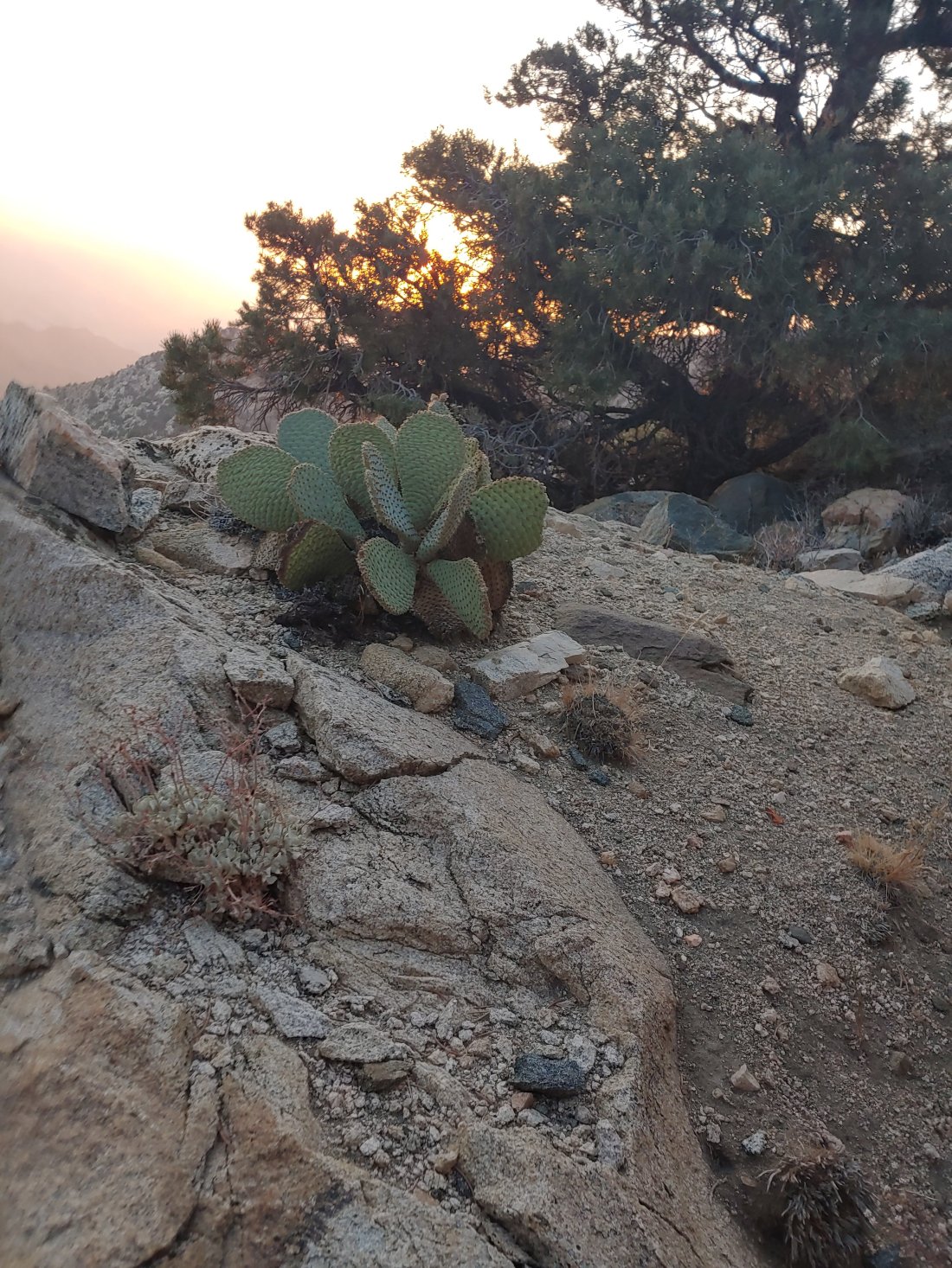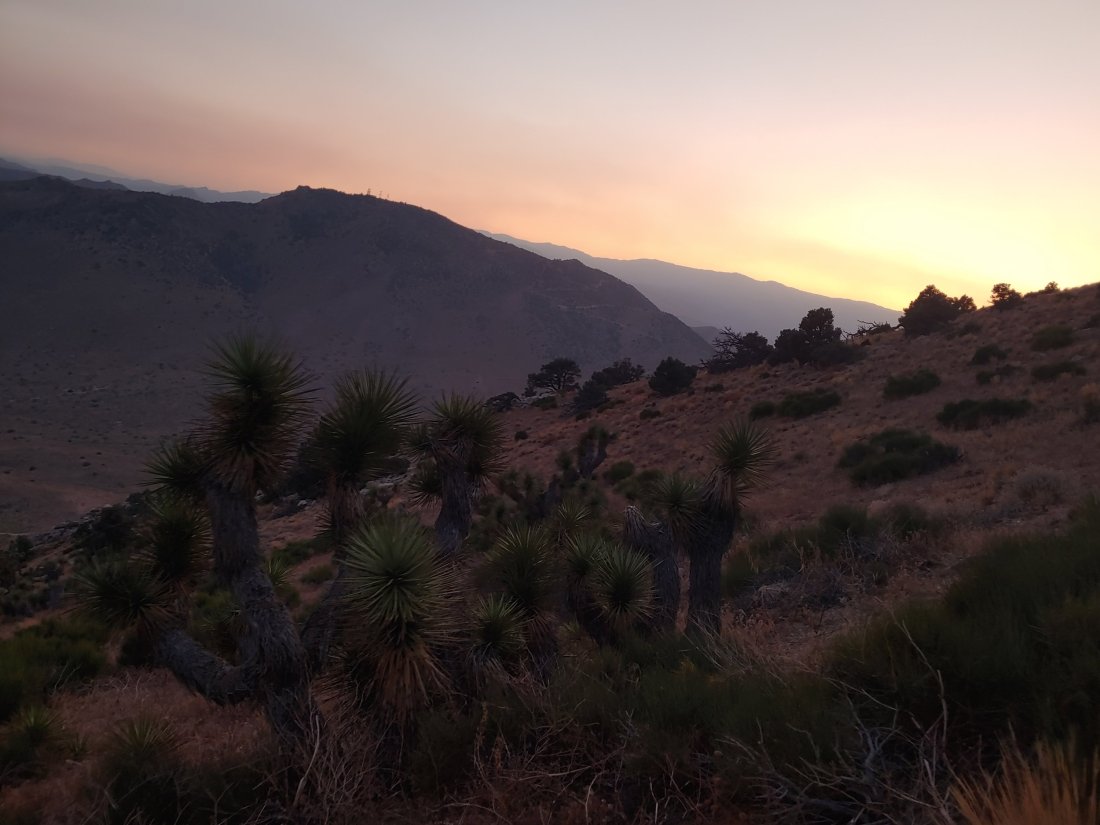 We had planned to camp at Bird Spring Pass, which appeared to be in a valley of sorts and so we had hoped it would be somewhat protected from the wind, but it was most definitely not. Bird Spring Pass was apparently in a wind tunnel, but since the next site was 6.5 miles away, we didn’t have much choice. In a desperate attempt to escape from the wind, we set up camp under a gigantic Joshua Tree. Holy hell those Joshua Trees are real brutes! Their branches are actually daggers, which left me with some decent scratches and bruises.