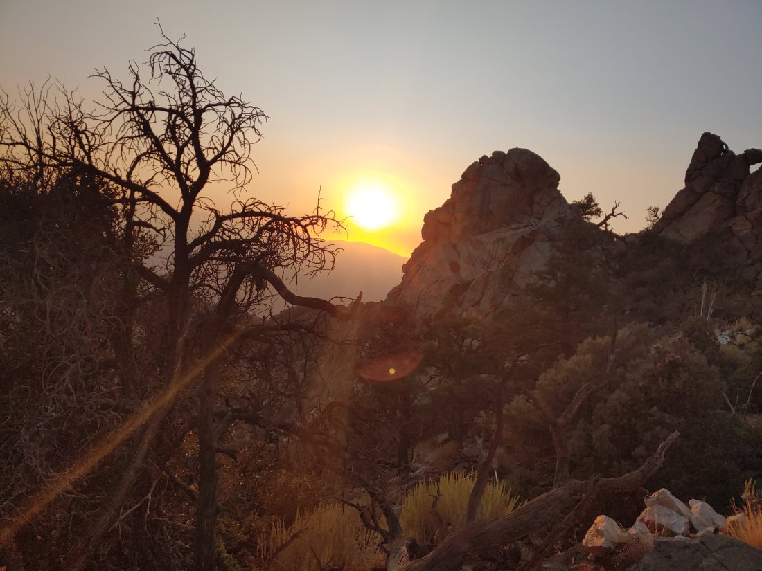 We had planned to camp at Bird Spring Pass, which appeared to be in a valley of sorts and so we had hoped it would be somewhat protected from the wind, but it was most definitely not. Bird Spring Pass was apparently in a wind tunnel, but since the next site was 6.5 miles away, we didn’t have much choice. In a desperate attempt to escape from the wind, we set up camp under a gigantic Joshua Tree. Holy hell those Joshua Trees are real brutes! Their branches are actually daggers, which left me with some decent scratches and bruises.