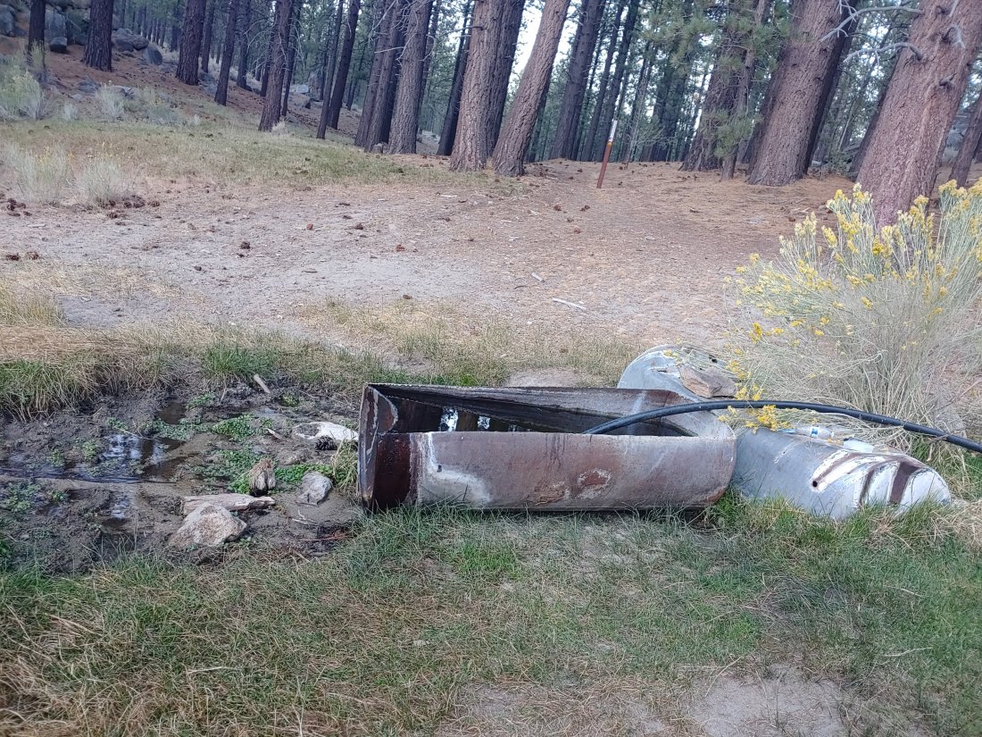 We continued down for about 2 miles to the junction to Landers Meadow Campground, where he had heard there was a spring, a pit toilet, AND, if we were lucky enough, toilet paper!!! As we entered the campground, we found the place packed with ATVs & hunters, all male…(what were the chances that there was still TP??!)