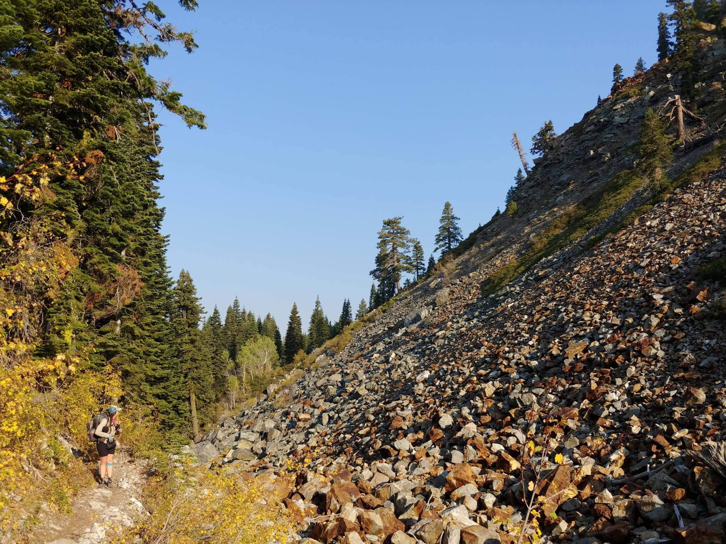 I met Matt at the bottom and encouraged him to drop his pack and walk to the spring while I waited for Jesse. When Jesse arrived, I offered to bring his dirty bottle to the spring to fill- Matt and I could fill our dirty bottles, too, and Jesse would have 3 liters of water to filter. The spring was 0.3 miles from the trail and we didn’t know how difficult it would be to get to, and I felt so bad for Jesse. Jesse declined, took off his pack, then set off to join Matt at the spring while I watched the packs and ate a snack…and took a selfie?