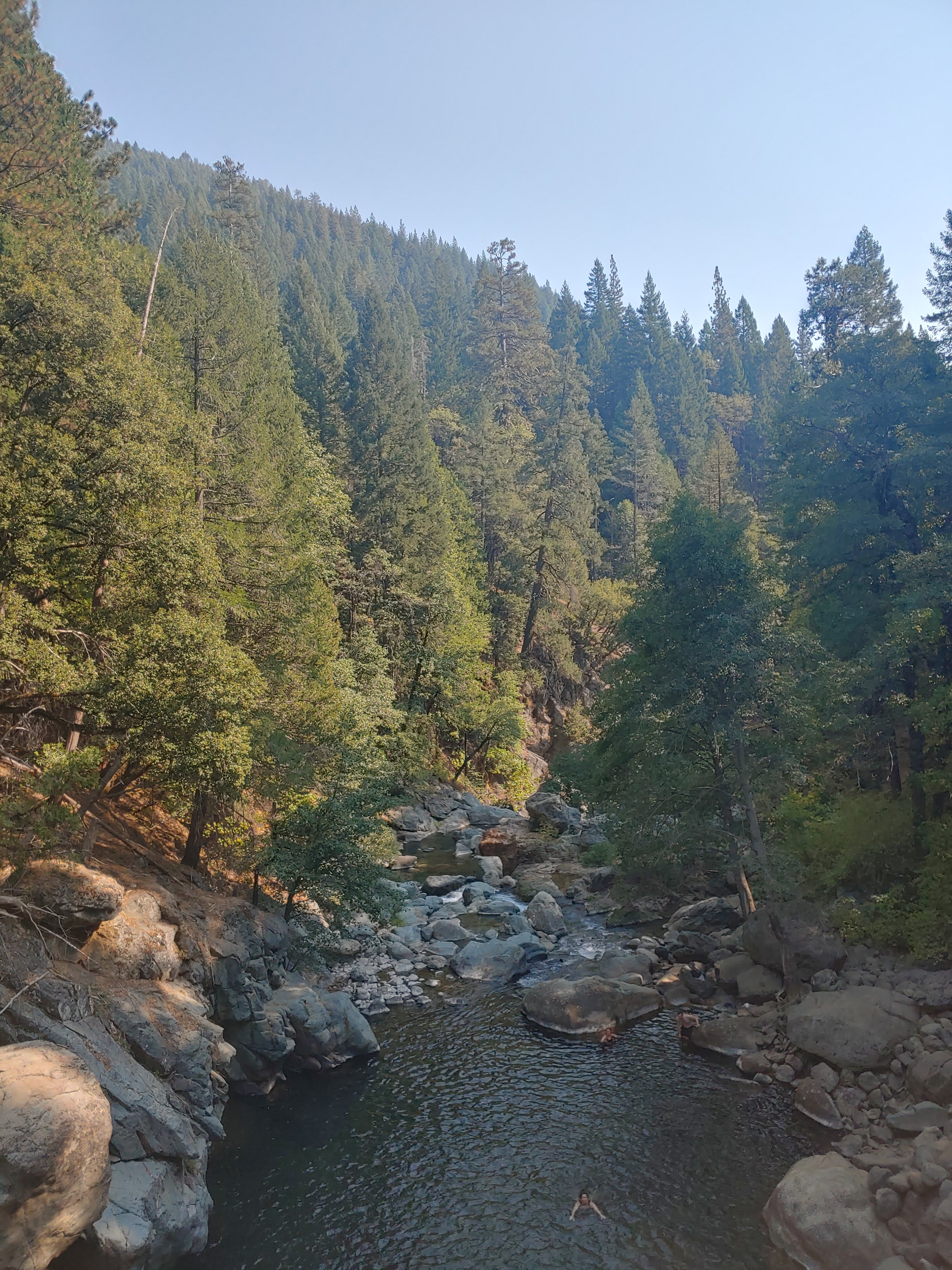 While we hiked through the forest and gained elevation, we couldn’t ignore the questionable air quality, which was definitely not ideal due to all of the active wildfires. We had meant to check the AQI before setting off, but like many things we meant to do, we didn’t…