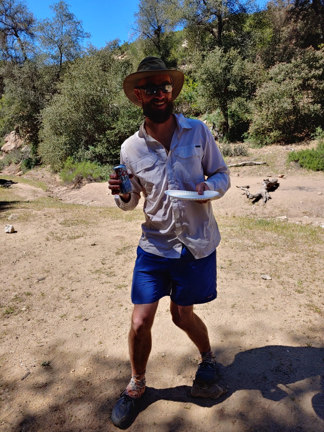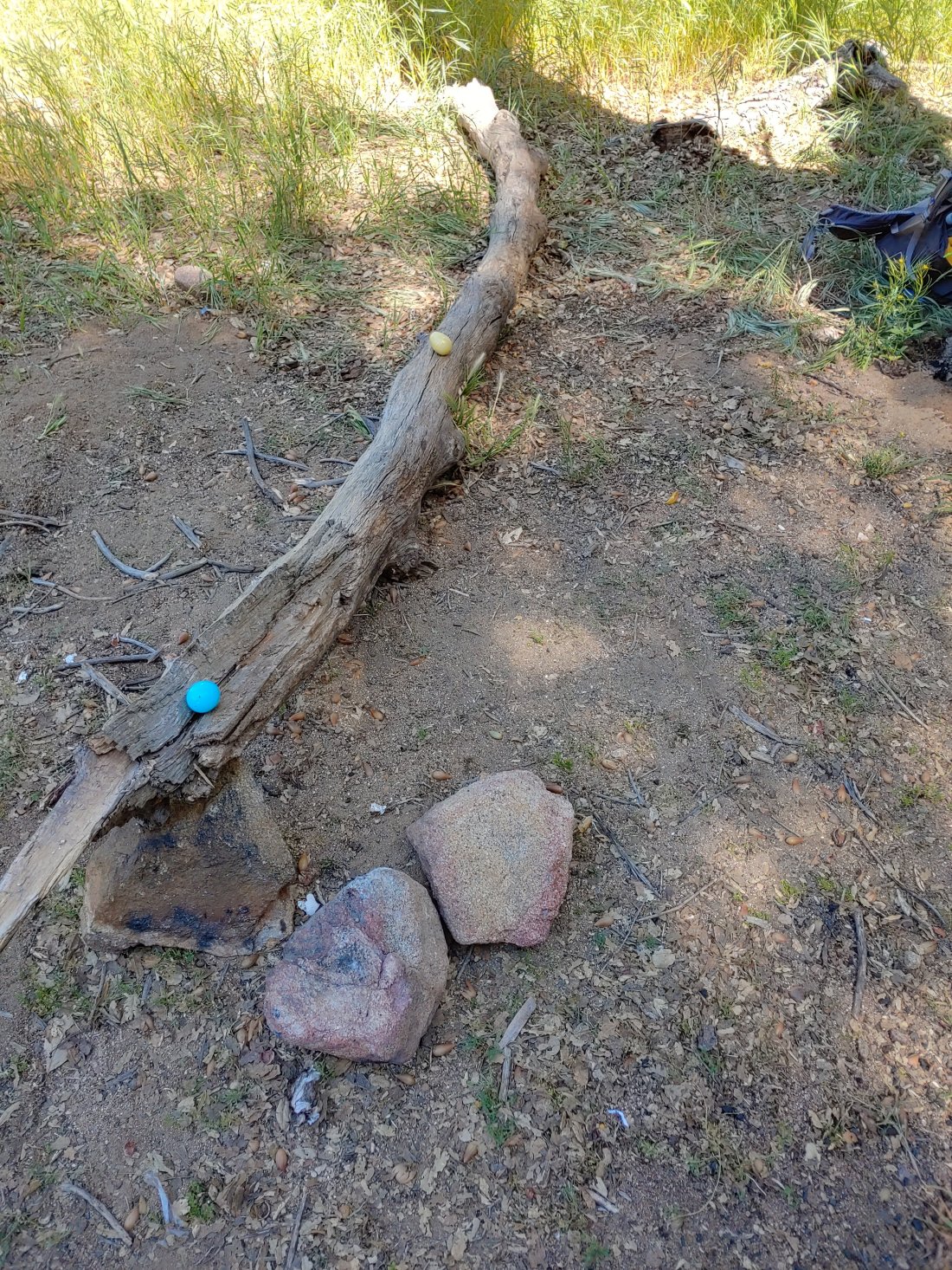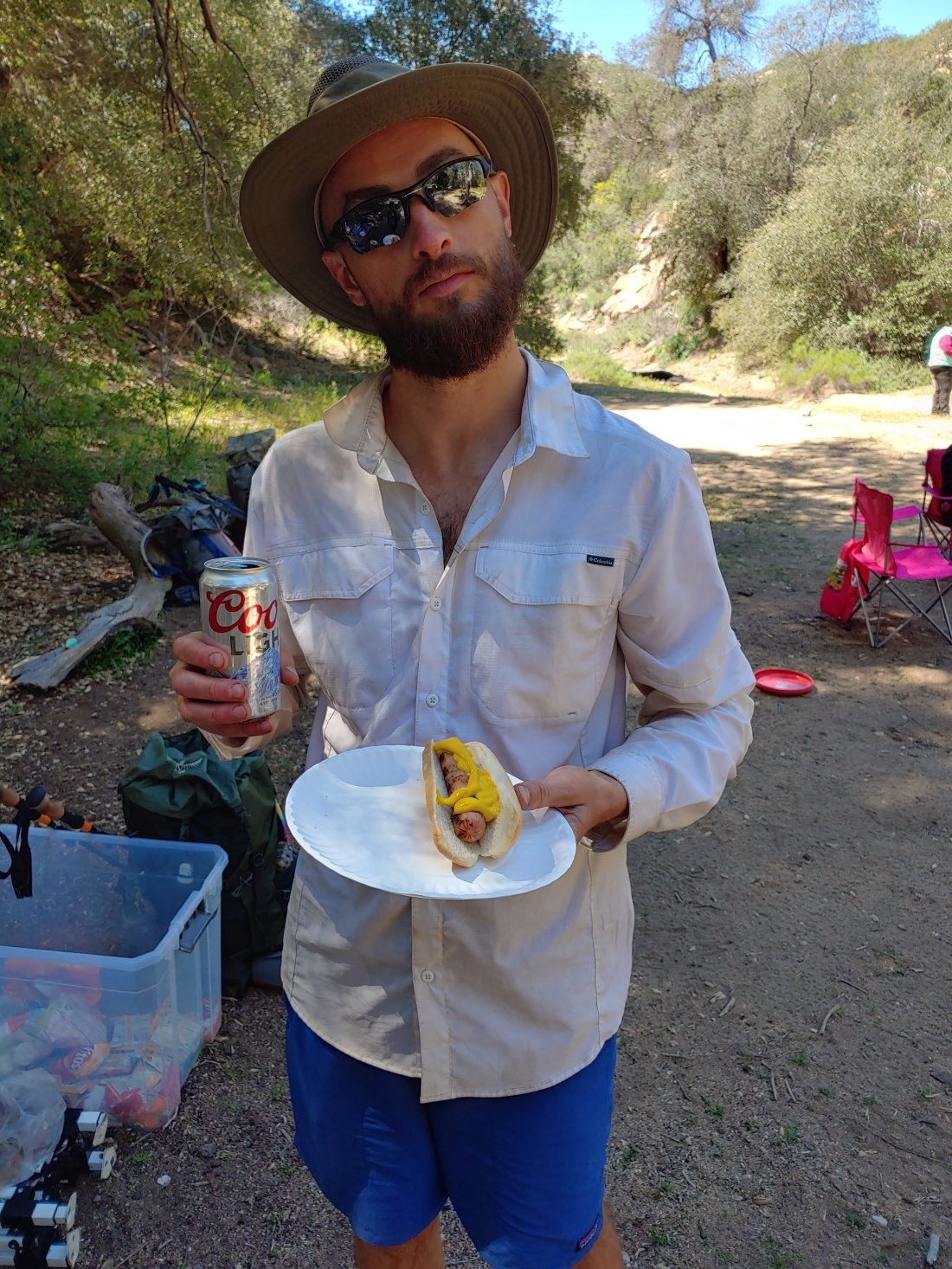 At mile 101 we came to Barrel Springs and found an amazing site: Easter Trail Magic!!!!! HOT DOGS, sausage, bacon, chips, pretzels, candy, beer, carrots, fruit, and a huge box of condiments! AND!! The Easter Bunny hid easter eggs around the area, full of JELLY BEANS!! It is said that the trail delivers, and for sure it did today!It was amazing. Trail angels Elizabeth and Robert are hikers/campers from Cardiff by the Sea and camped out at Barrel Springs with their daughter for the weekend to provide trail magic ALL weekend! They were awesome- and we enjoyed about an hour sitting with them and our new hiking friends.
